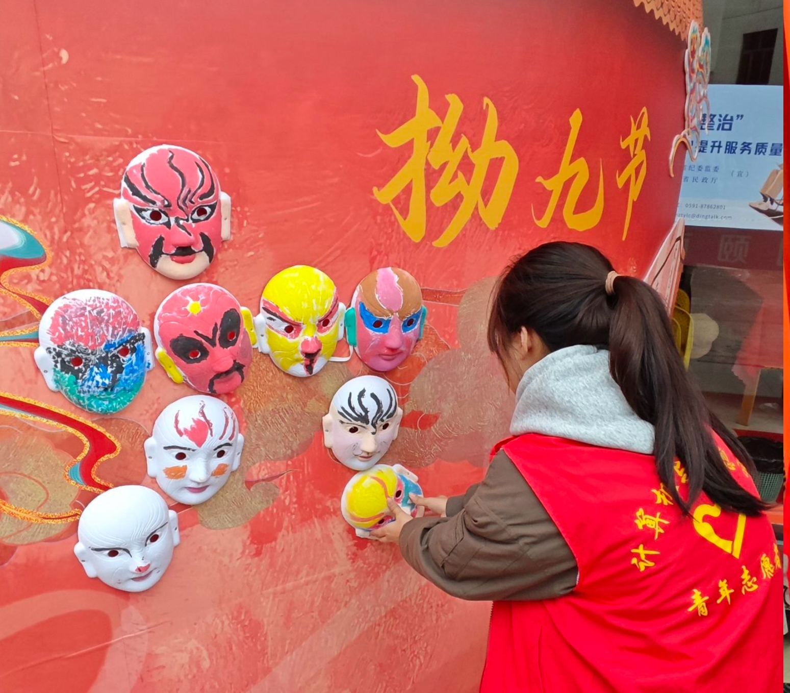 活动当天,同学们提前到达养老院,首先整理好老人们昨天绘制的面具,将它们巧妙地摆放成一个寓意吉祥的“九”字形,表达对老人们健康长寿的美好祝愿。随后,同学们为老人们端上浓香四溢、温情满满的拗九粥,老人们围坐一桌,一边品尝,一边愉快地聊家常,并询问同学们的学习情况,鼓励他们好好学习。整个养老院洋溢着欢声笑语,温馨愉悦。