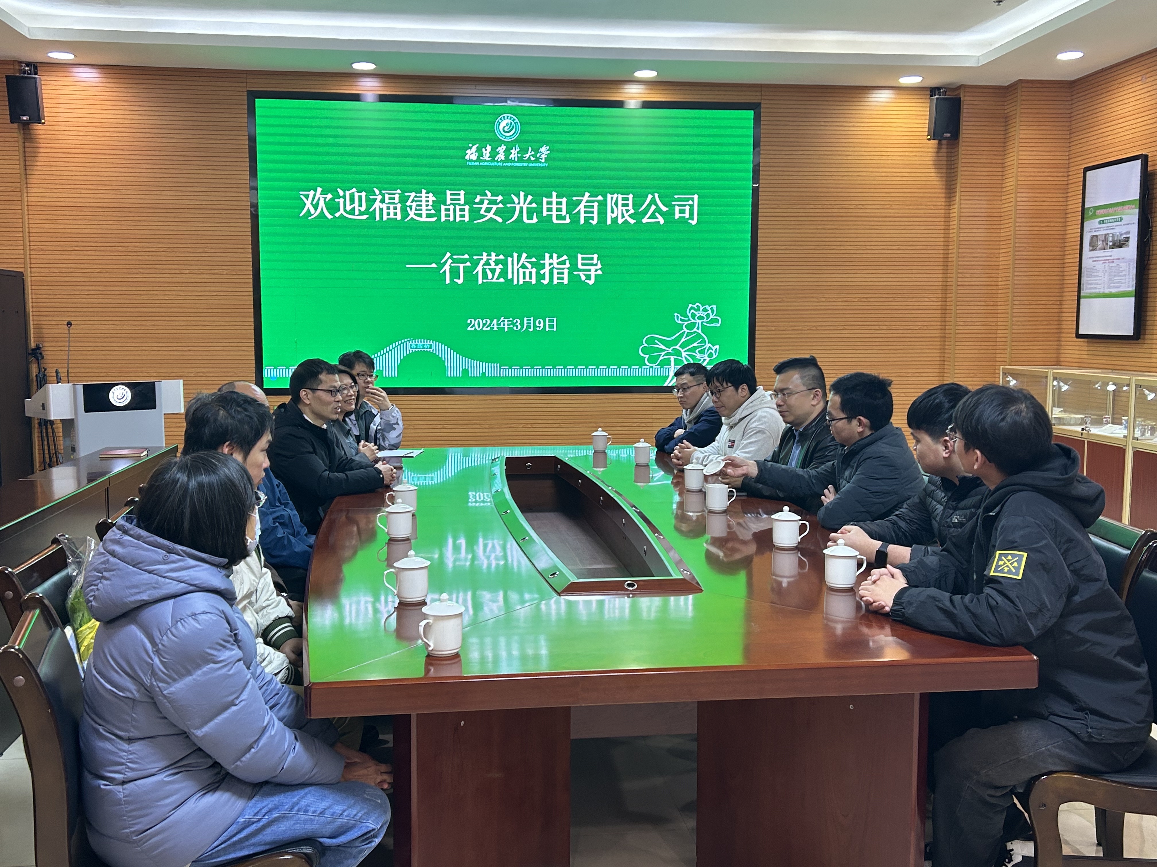 3月9日下午,泉州芯谷安溪分园副主任陈永坚,福建晶安光电有限公司副总经理、台湾人才协会会长谢斌晖一行莅临数字经济学院调研指导,并召开深化合作交流座谈会。数字经济学院副院长吴义炳教授、材料工程学院专家欧阳新华教授、安溪校区台籍教师及电子信息系教师代表参加调研座谈会。