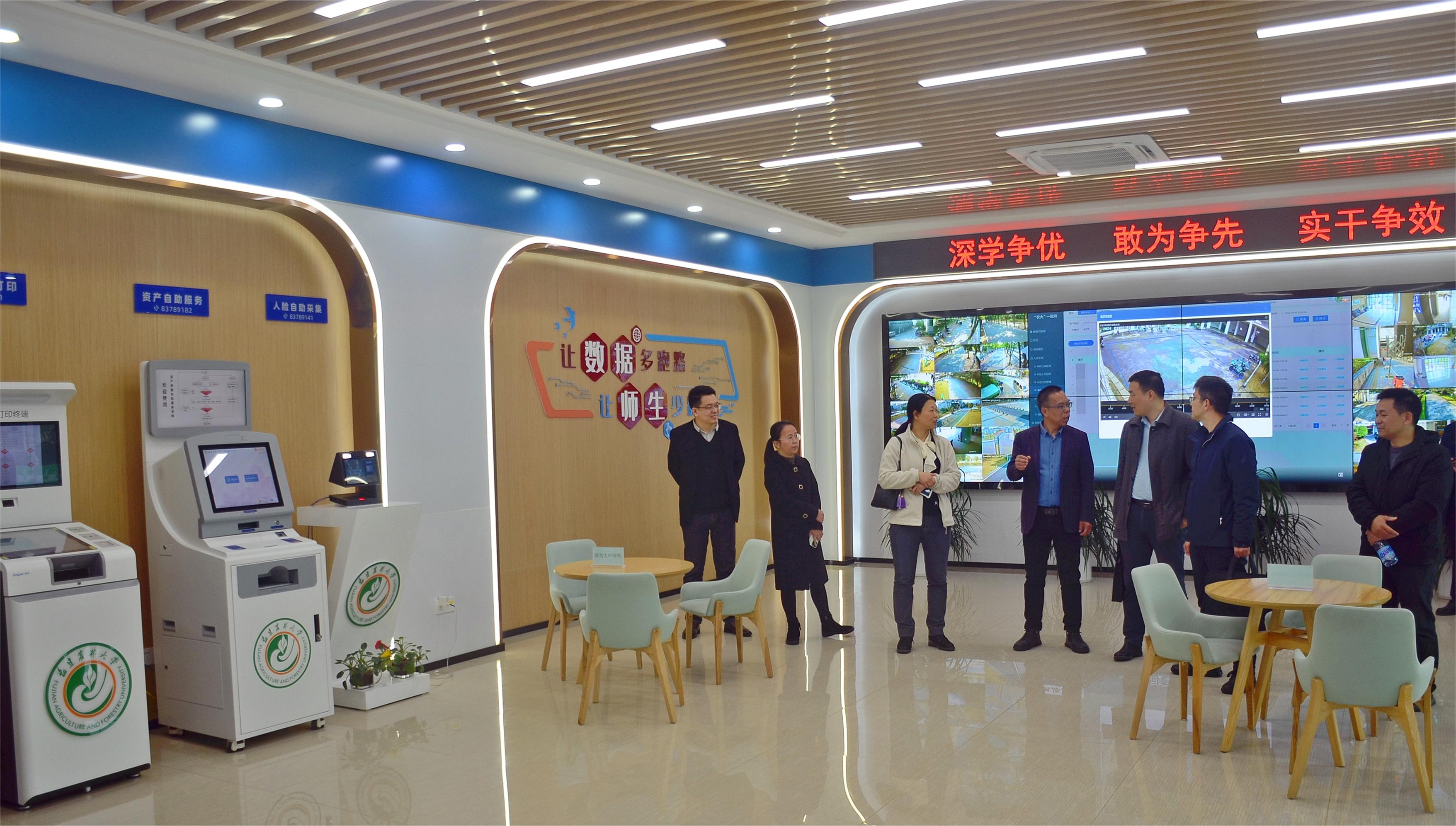 会上,曾海滨汇报了我校“十四五”以来智慧校园建设取得的成效以及“智慧校园试点校”项目建设方案的主要任务、进度安排等情况。现场考察期间,专家组走访考察了学校核心机房、“E智慧”师生服务大厅、网络运维服务中心、田家炳楼教室智能管理系统等智慧校园项目建设场所,同时分别与教师代表、学生代表进行了交流座谈,听取师生们对智慧校园未来建设的建议。专家组充分肯定了我校在“智慧校园”建设方面取得的成效,希望学校发挥自身特色优势,持续推进智慧校园建设新跃升。