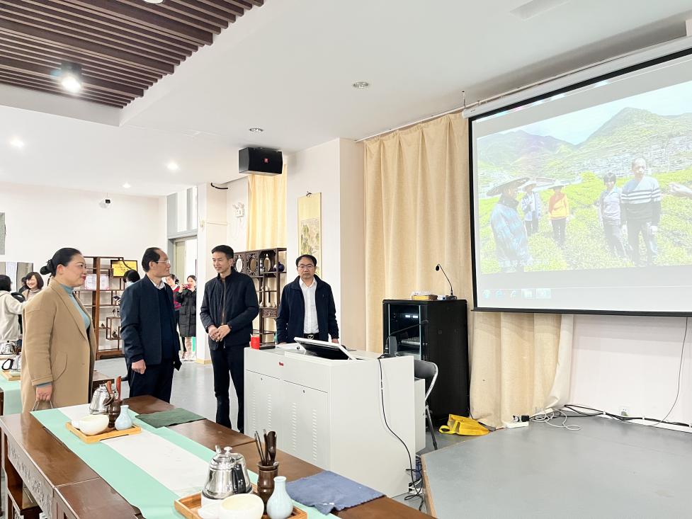 会后,詹慧龙一行前往实验楼参观党的二十大代表——温文溪的大师工作室,温文溪老师与调研组分享了自己从退役军人转行制茶工匠的人生经历,交流制茶心得与感悟。