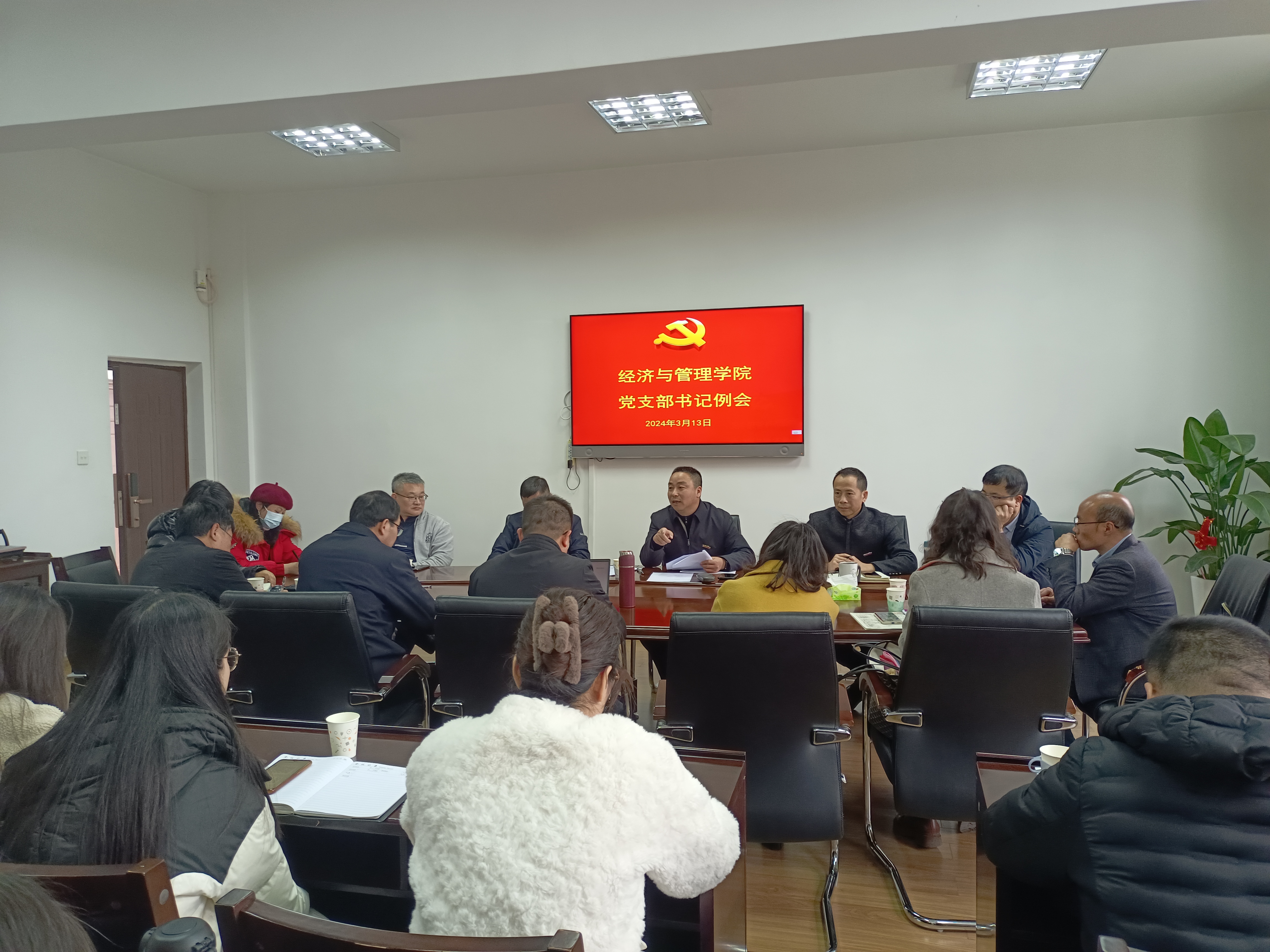 3月13日下午,经济与管理学院召开党支部书记例会。院党委委员、全体党支部书记等参加会议,院党委书记张开晃主持。