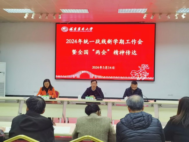 曾华平代表校党委传达2024年校春季学期开学动员部署会议精神,对统一战线工作提出具体要求,并对广大统一战线成员寄予“牢记政治责任、筑牢思想认识”“加强自身建设,规范组织管理”“强化全局观念,认真履职尽责”三点希望,号召全校统一战线深刻领会和认真贯彻落实习近平总书记在参加全国两会期间的重要讲话精神和全国两会精神,深入学习贯彻习近平总书记关于做好新时代党的统一战线工作的重要思想,与校党委同心同向同行,凝心聚力落实学校的决策部署,以优异成绩迎接新中国成立75周年。