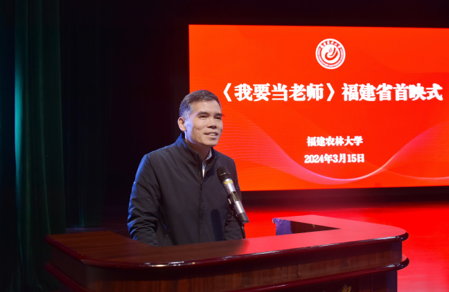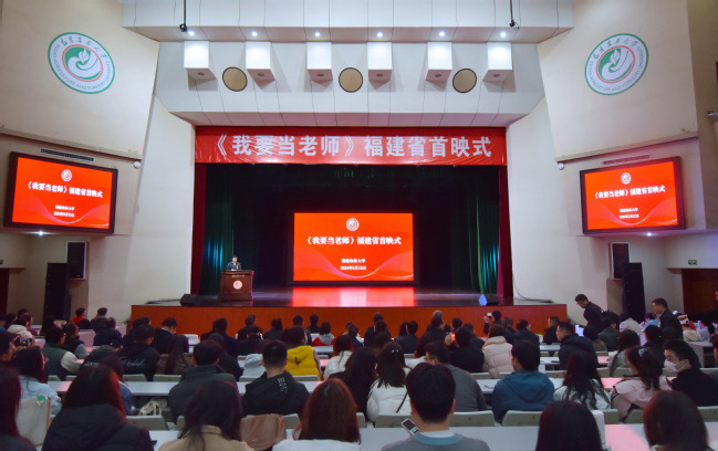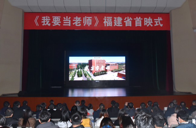 在习近平总书记主持召开学校思想政治理论课教师座谈会并发表重要讲话5周年之际,由教育部指导、天津市委宣传教育部门支持、天津电影制片厂等联合出品的首部思政课教师题材故事片《我要当老师》福建首映式3月15日在我校大礼堂举行。省教育厅专职副总督学黄建顺,校党委书记王建南、校党委副书记陈世奎、副校长唐振鹏,国家菌草工程技术研究中心首席科学家林占熺,省教育厅思政处负责人,省内部分高校的马克思主义学院院长和教师代表,来自福建省“1+N”建设马克思主义学院引航计划(开云网页版组团)的联盟单位、福建省“1+N+X”共建数字化思政课虚拟教研室成员单位的思政课教师及我校师生代表约600余人共同观看影片。
