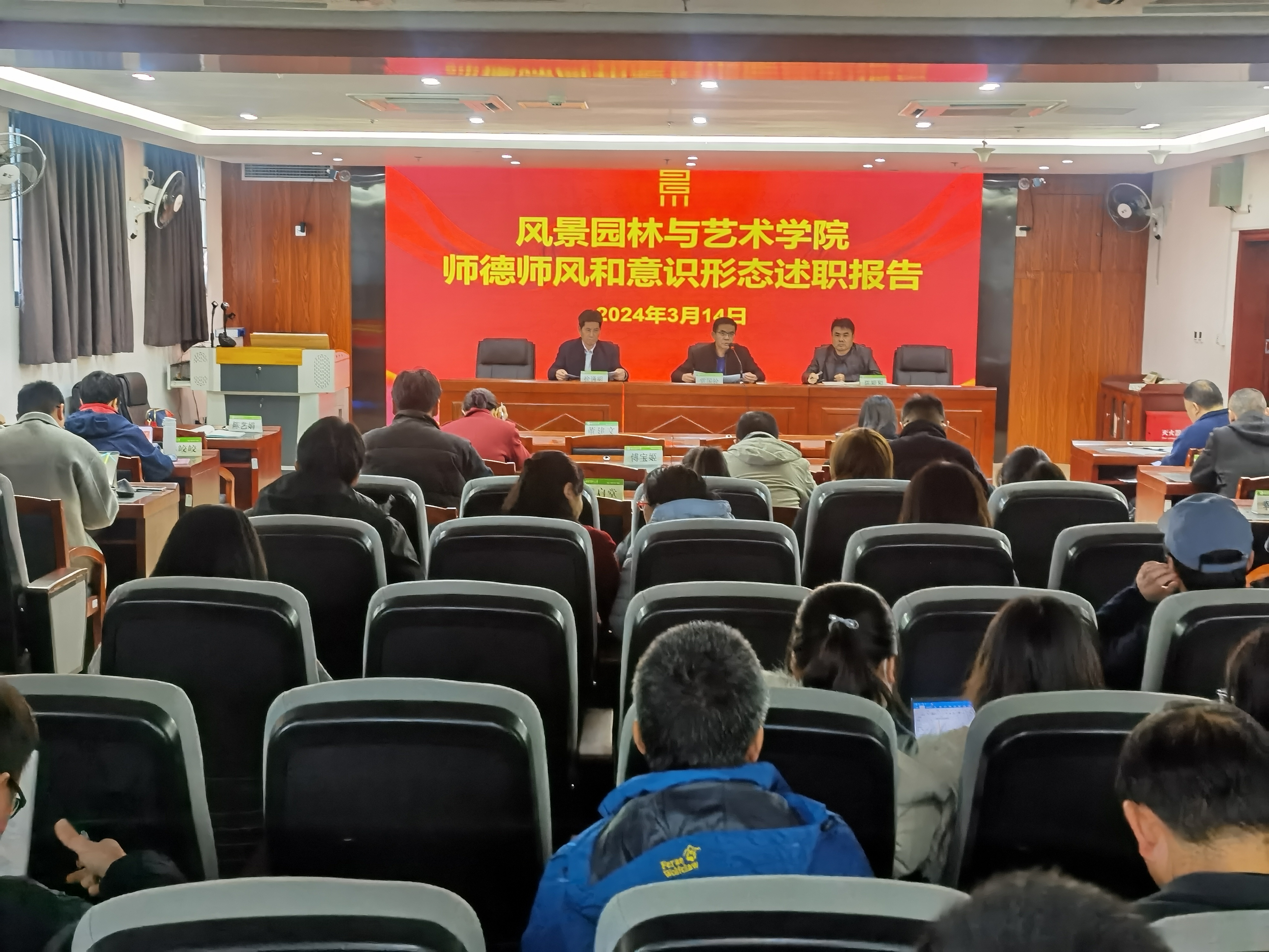 3月14日下午,风景园林与艺术学院在旗山校区综合楼1204会议室召开师德师风和意识形态学习会,会议由学院党委书记雷国铨主持,全院教职工参加会议。
