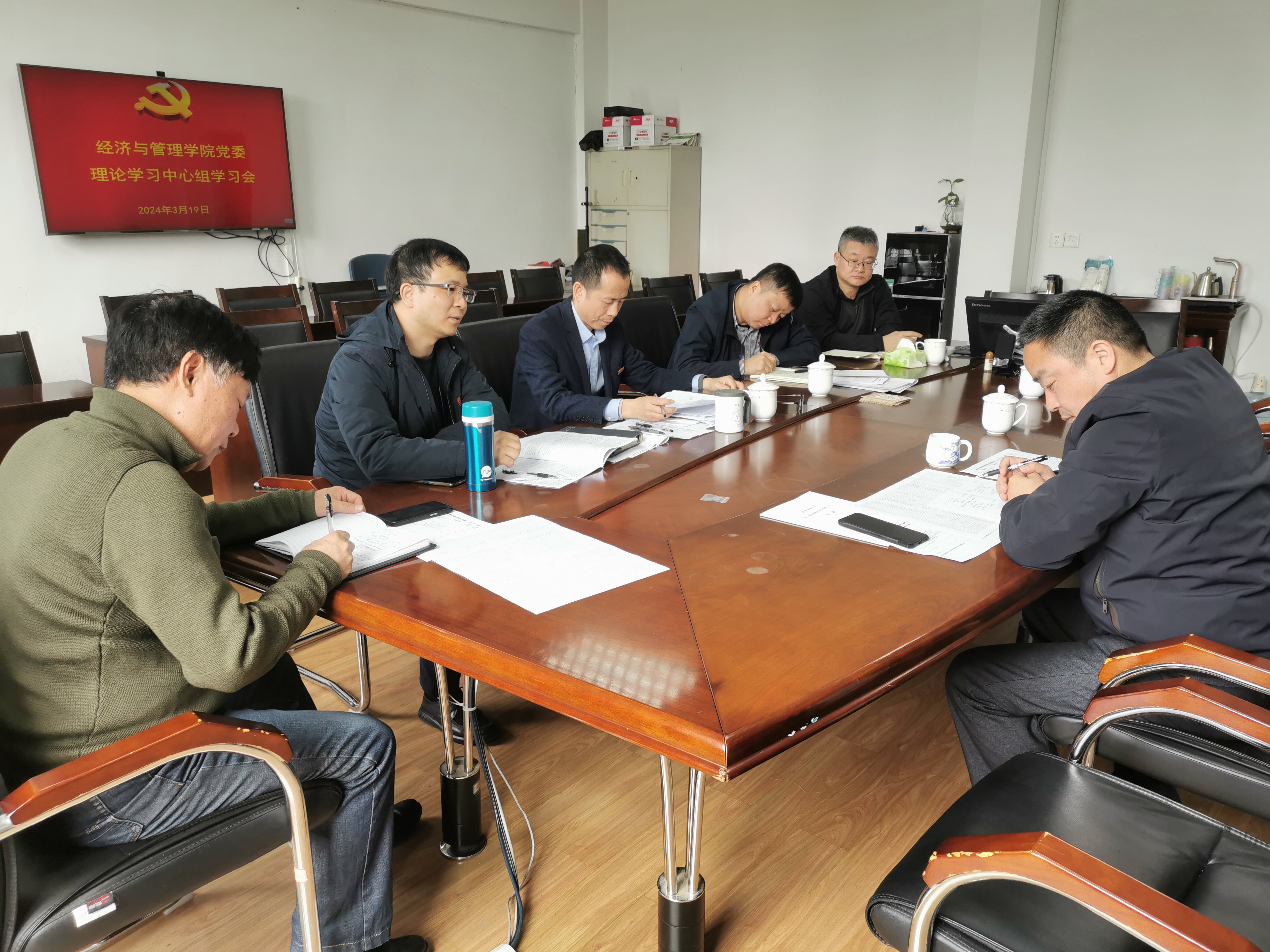 3月19日上午,经济与管理学院党委理论学习中心组认真学习贯彻习近平总书记在全国两会期间的重要讲话和全国两会精神,贯彻落实校党委常委会(扩大)会议精神。院党委书记张开晃主持。