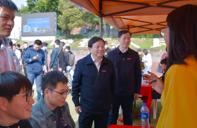 在北区田径场,校领导察看了正在进行的2023—2024年福建省高校毕业生福州金山学区专场招聘会情况,与用人单位和学生交流,了解用人单位的需求和学生的就业情况,并就进一步深化校企合作等与企业代表初步交换意见。