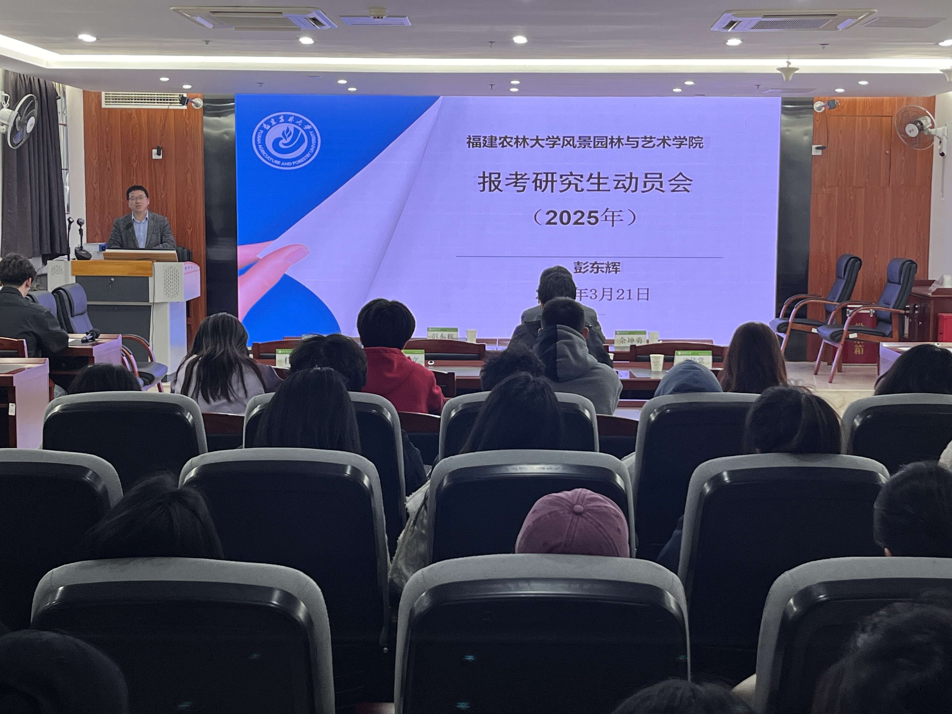 3月21日下午,风景园林与艺术学院于综合楼12楼会议室召开2021级本科生考研动员大会。本次活动邀请学院副院长(主持工作)彭东辉、副院长余坤勇、各教学系主任、两位在读研究生代表主讲。学院党委副书记徐通明、2021级辅导员及2021级本科生参加了动员大会。