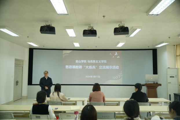 3月17日上午,金山学院马克思主义学院在金综楼B402开展思政课教师“大练兵”交流展示活动,学院党委副书记、纪委书记叶扬捷和马克思主义学院全体教师参加。