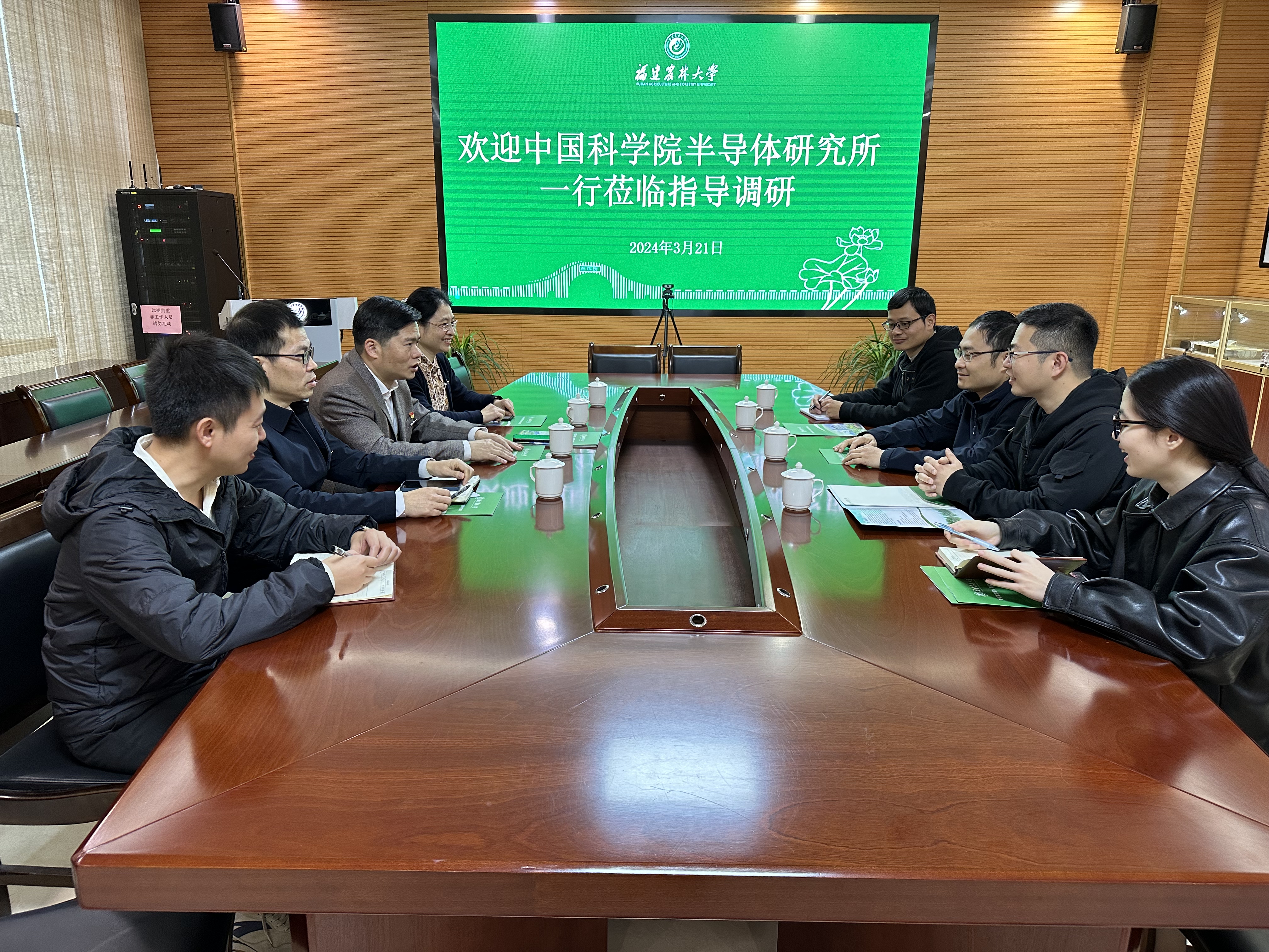 会上,黄成茂代表学院对郑军一行的到来表示热烈欢迎,他详细介绍了学院发展历史、办学思路和教学成效,希望双方以此为契机,展开深层次合作。吴义炳表示未来校区办学将紧密围绕地方经济发展凝练学科特色,加大光电平台建设。在光电领域学院和中国科学院半导体研究所合作潜力大,双方可深入交流,在人才互访、学生联合培养、科研项目申报方面加强合作。