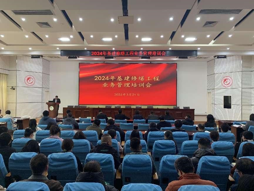 为落实学校新学期工作会议要求,进一步提升基建修缮项目管理目标和成效,推动“基建修缮项目管理提升年”各项工作实施,3月21日下午,基建处联合计划财务处、审计处、国有资产与实验室管理处(采购与招标办公室)、现代教育技术与信息管理中心等部门在禧强楼学术报告厅召开2024年基建修缮工程业务管理培训会。