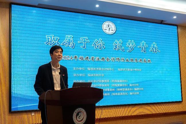 3月20日下午,我校在常盛报告厅与福建省财政厅注册会计师中心举行“职属于你,筑梦青春”福建省注册会计师行业服务进高校活动。福建省财政厅注册会计师中心主任林林一行,我校副校长林庆藩出席活动。