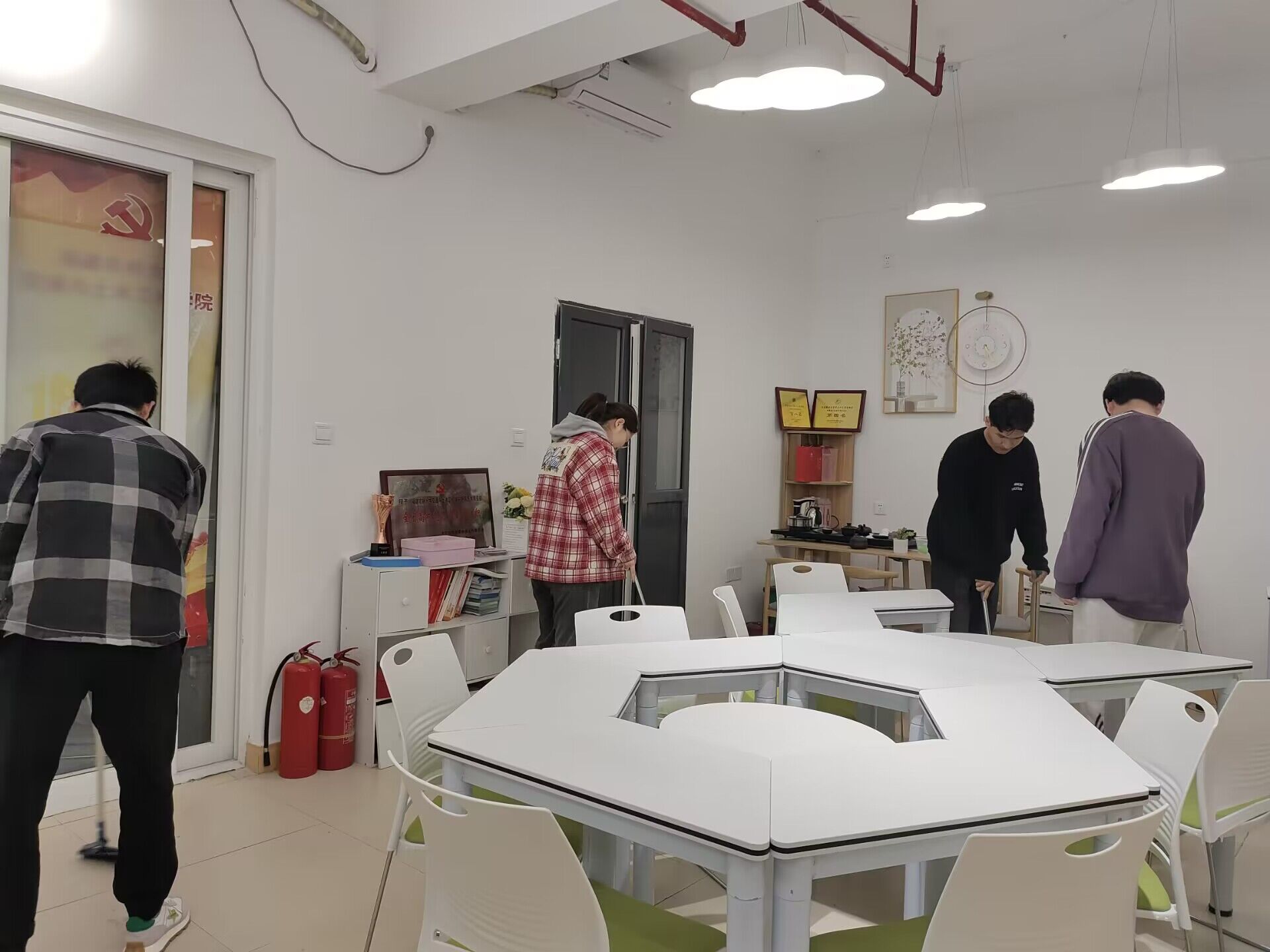 学院青年志愿者走进中美小区,开展“青春筑梦,爱心护航”志愿活动。对社区内活动中心的公共区域进行了全面清扫,用实际行动为社区居民创造一个整洁舒适的活动环境,也为后期“爱心家教”活动顺利开展做好准备。志愿者队伍还与社区居民进行沟通交流,了解基层各项服务工作及服务需求,以便后续能够进一步参与到服务社区、服务居民的社会实践中。