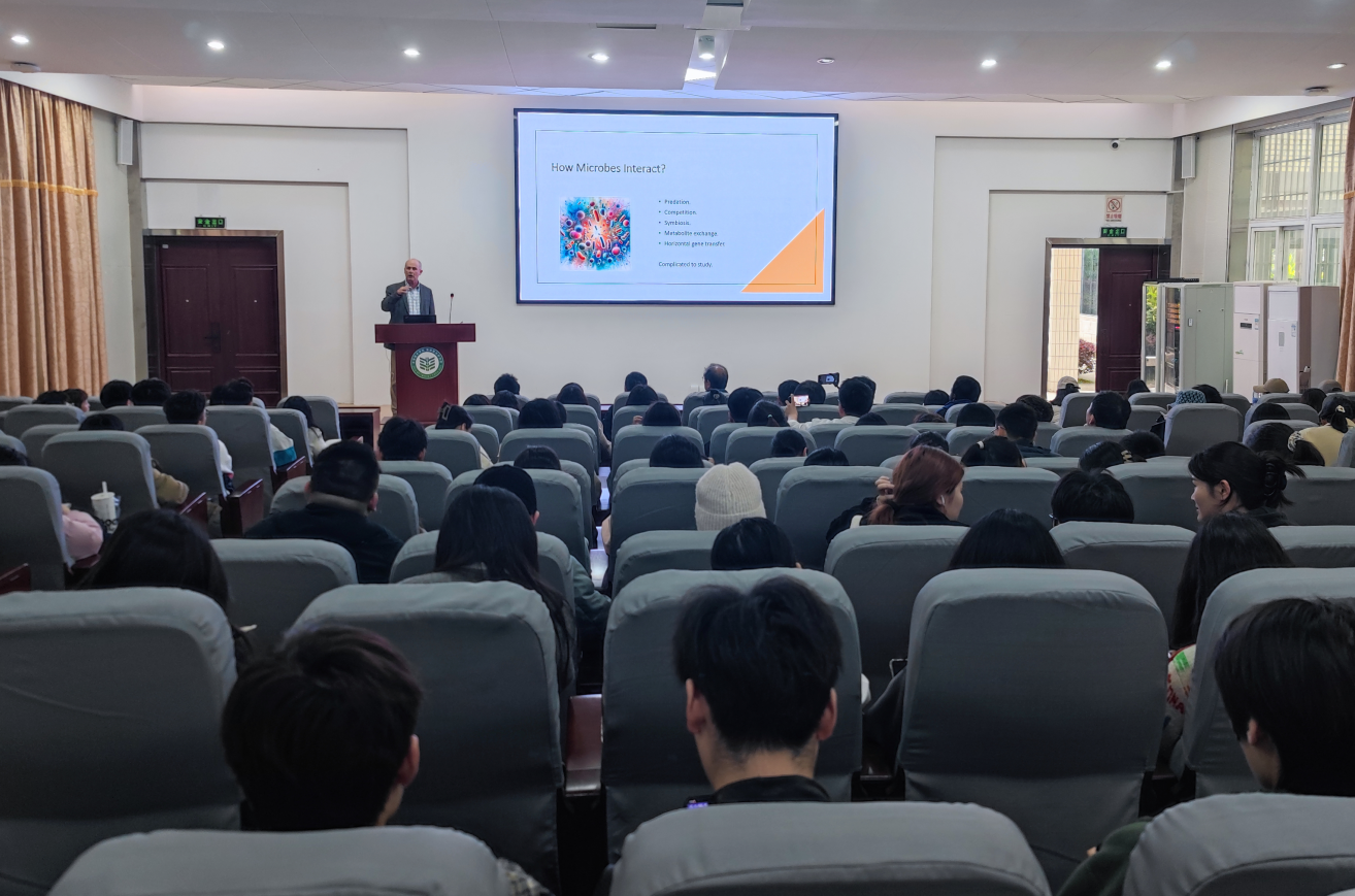3月18日下午,Bennetzen教授作题为Microbial Partner (MIPner) Analysis for Uncovering Microbe-Microbe Interactions的报告,介绍了在真实环境中细菌互作鉴定的方法。这是植物细菌活体互作鉴定的一大突破性尝试,将目标细菌作为诱饵挂在特定的胶棒上来筛选与其互作的细菌,在培养基上模拟土壤环境来鉴定互作的菌种,这一探索丰富了人们对细菌互作的认知,为寻找有益菌的互作菌来推动农业的发展奠定理论基础。