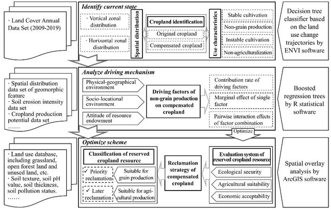 课题组采用决策树分类监测方法探究耕地占补平衡制度下福建省近十年“原始”耕地及补充耕地利用变化特征。研究发现,东南部地区“原始”耕地的分布密度高于西北部地区。而补充耕地分布呈现相反的格局,西部地区分布密度高于东南部地区。区域补充耕地面积与农业经济产出呈正相关关系,且相关性逐年增大,这表明补充耕地存在向农业发达地区转移的趋势。利用特征上,补充耕地较“原始”耕地更易出现“非粮化”;补充耕地存在不稳定利用,而“原始”耕地不稳定利用的比例几乎为零;但“原始”耕地相对更易出现“非农化”。基于自然地理环境、社会区位环境和资源禀赋属性等驱动因素的增强回归树模型分析表明,邻近农田距离成为当前耕地“非粮化”发生的主导因素,坡度的影响在持续下降,而农田斑块面积的影响是持续的。进一步分析各驱动因素的边际效应与组合效应,发现“非粮化”最常发生在坡度和海拔分别大于20°和1000m、与邻近农田和居民区的距离分别大于1.5km和6km以及坡向为完全或半遮蔽的耕地上。在此基础上,研究提出了我国山区耕地后备资源评价体系的阈值优化方案和差序开发计划,并建议我国山区开启林地、草地、园地等其他农用地与耕地进行空间动态置换的新占补平衡制度。