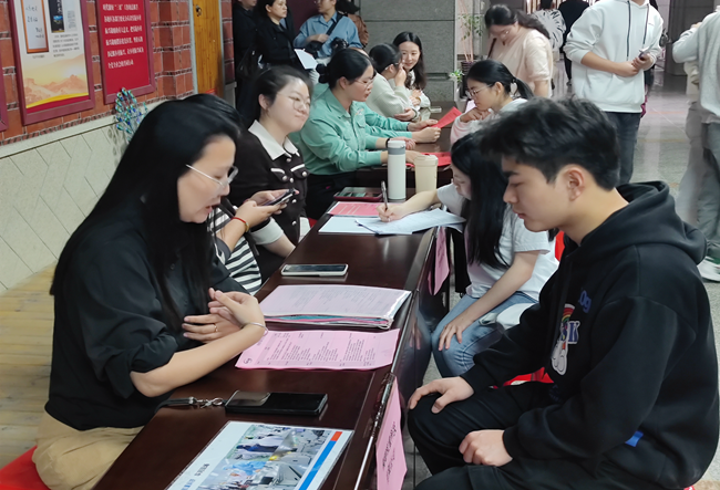 招聘会现场,10家企业代表逐一对企业发展状况、岗位需求、职业发展空间及企业文化进行详细介绍。随后,现场进入了热烈的交流互动及现场招聘环节,同学们与各企业代表亲切交流,部分企业与学生初步达成用人意向。