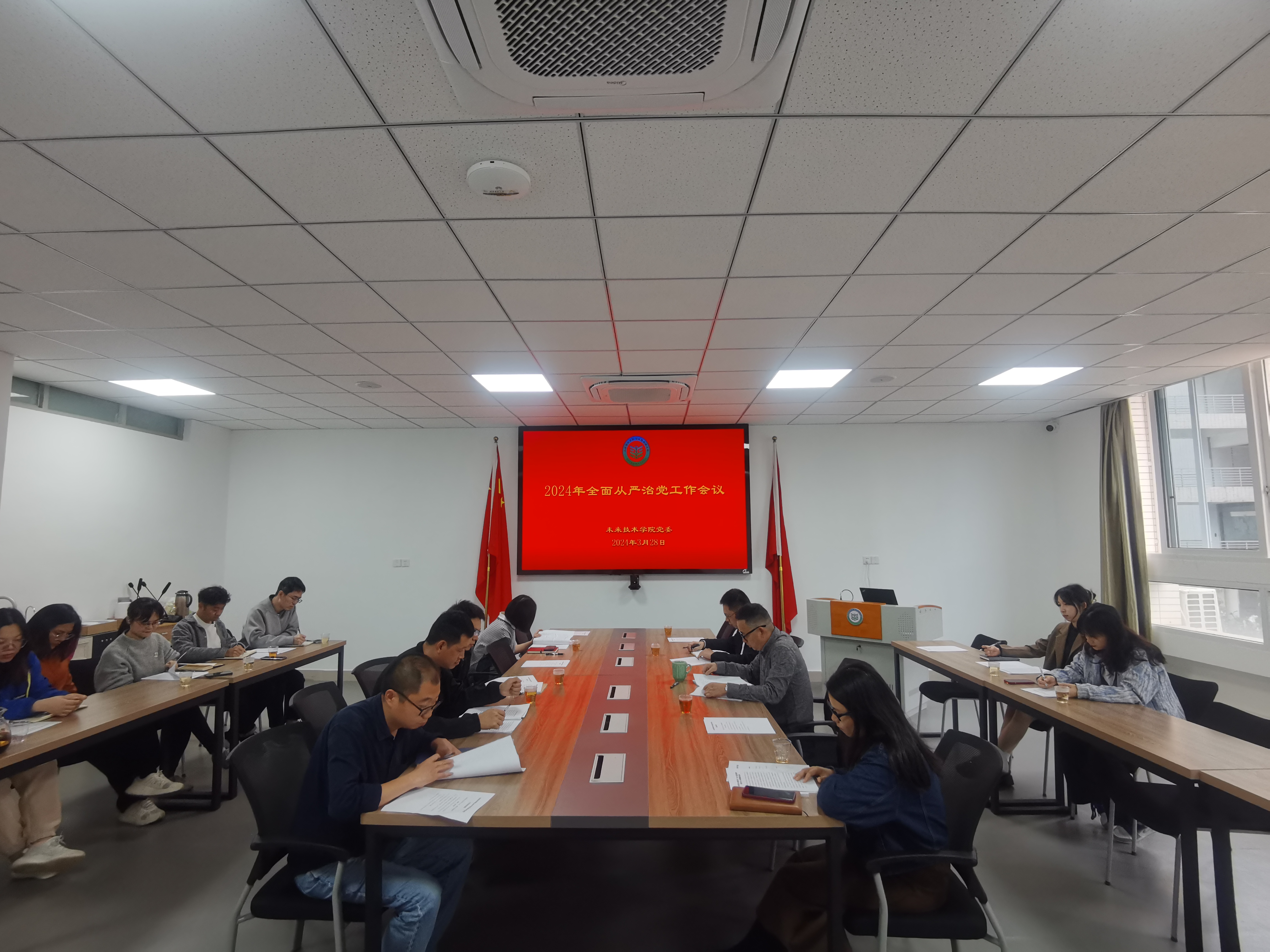 会议传达学习了学校2024年全面从严治党工作会议精神,总结2023年学院全面从严治党工作,研究部署2024年重点任务。会议要求,一要深入学习贯彻习近平总书记关于党的自我革命的重要思想,更加坚定全面从严治党的政治自觉,切实扛起全面从严治党政治责任,持续推动全面从严治党工作向纵深发展、基层延伸。二要准确把握新时代新征程全面从严治党的任务要求,加强党的政治建设,持之以恒推进党风廉政建设,不断健全完善监督体系,以政治生态持续向上向好保障学院事业高质量发展。三要不断强化管党治党的政治担当,坚持目标导向和问题导向相统一,党内监督与师生监督相统一,坚持不懈深化问题整改、一刻不停加强纪律建设、坚定不移推动改革创新,以党的组织体系建设的整体效能赋能学院事业高质量发展。