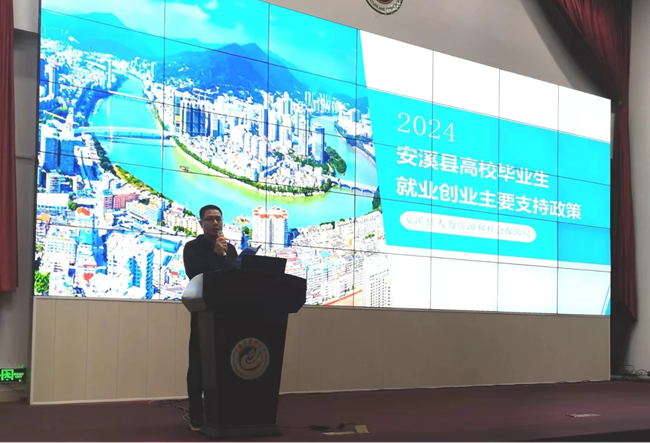 会上还邀请安溪县人力资源和社会保障局相关负责人介绍了最新的就业创业政策,他们围绕高校毕业生创业资助、服务保障、生活补贴、见习补贴、安居补助等方面的具体规定以及政策文件中所涉及的相关优惠待遇如何申报等进行全方位多角度解读,为毕业生们提供一系列的政策指导和就业创业建议,希望毕业生多深入了解安溪县人文历史底蕴和创新产业发展趋势,增强大家对安溪县的认同感,希望更多青年人才走进安溪,在这里成就梦想、实现价值、演绎青春华章。同学们还结合自身实际情况就未来的职业规划、就业创业政策背景、就业实习遇到的困难等相关问题展开热烈交流。