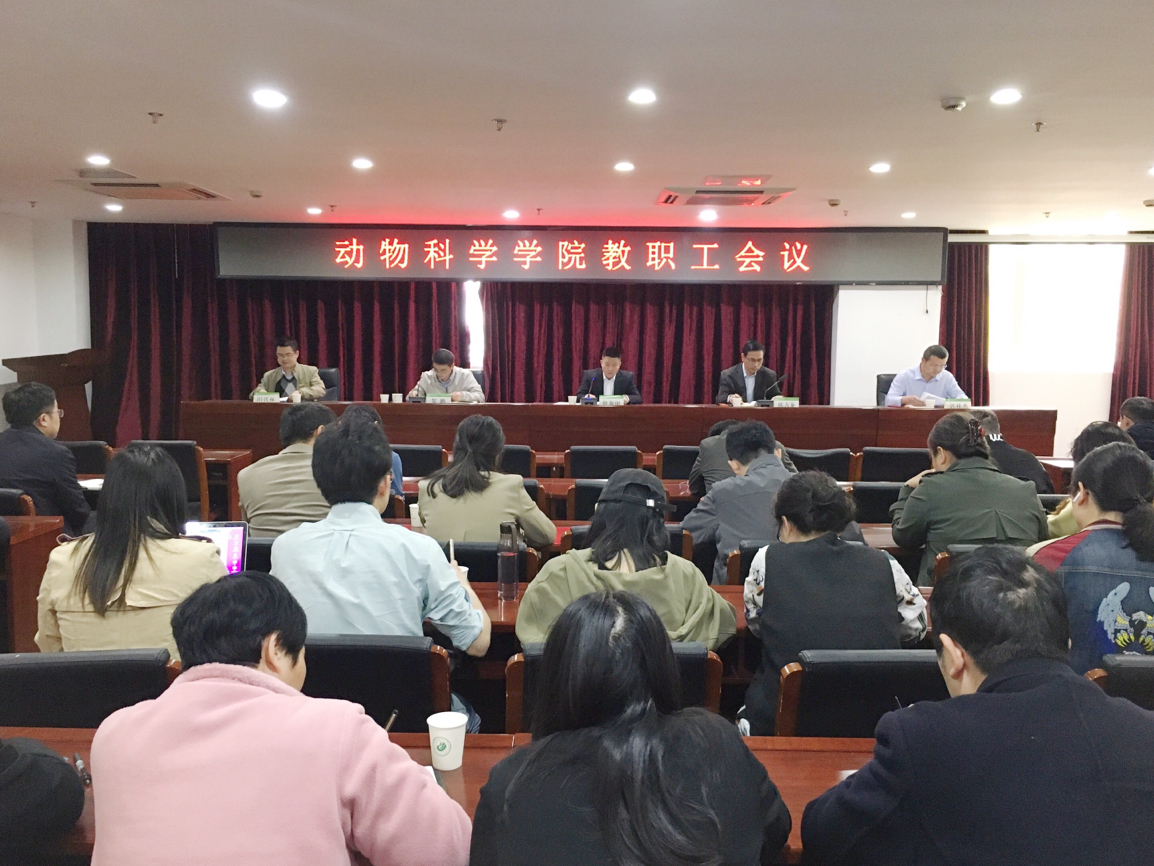 3月28日下午,动物科学学院在学院七楼会议室召开全院教职工会议。学院领导班子及全体教职工参加会议,会议由学院党委副书记(主持工作)修新田主持。