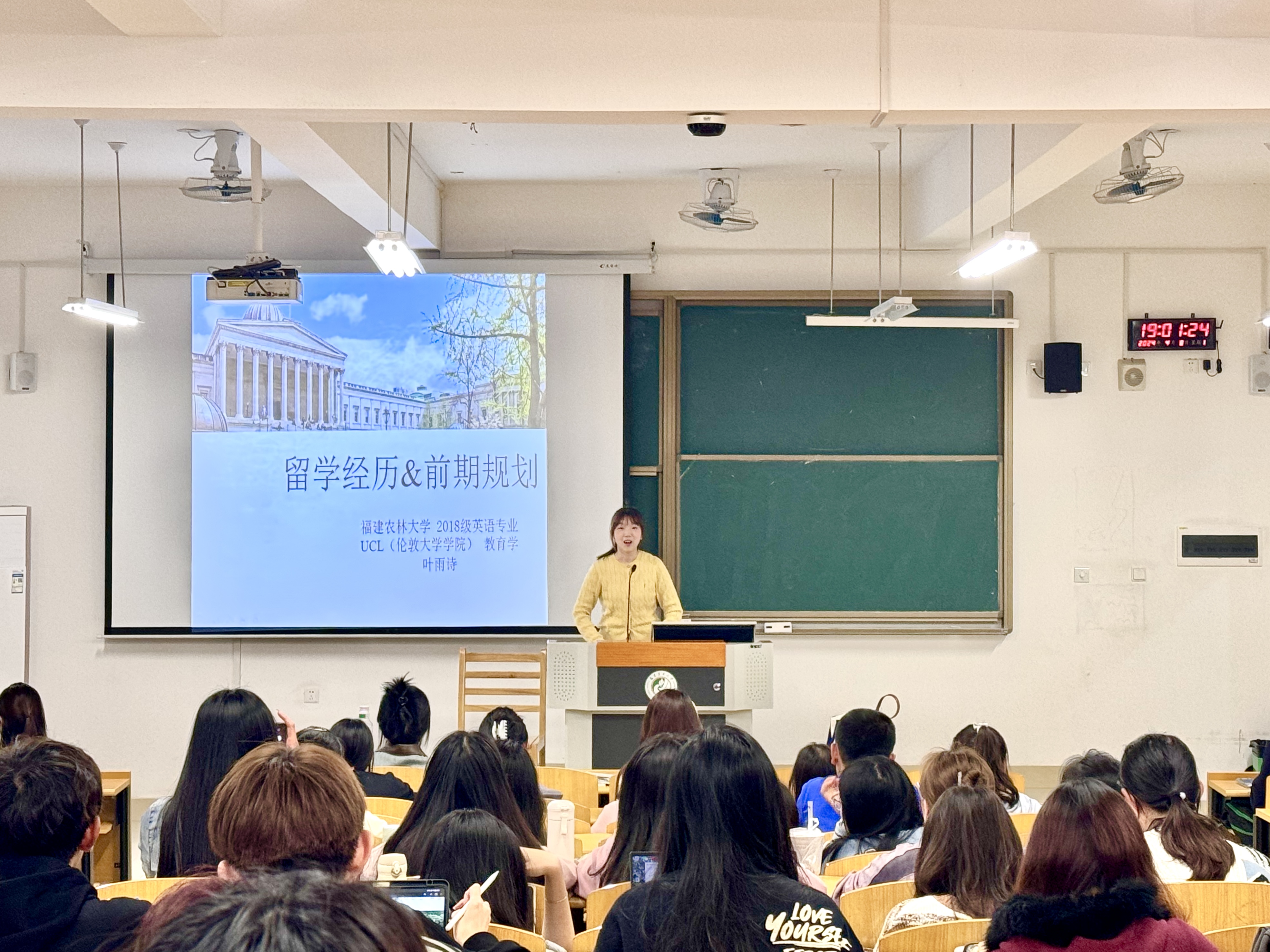 “优秀学友讲堂”主要立足“身边人、身边事”的叙事方式,邀请2018级戴尔豪西大学联合学院(国际学院)英语专业优秀毕业生叶诗雨担任主讲。叶雨诗从个人成长和求学历程出发,向同学们分享在伦敦大学学院攻读教育学硕士的经历,讲述在本科及留学期间的收获与成长,展示了不同地域背景下的教学特色和文化风貌,鼓励同学们充分利用学校资源、明确兴趣志向、规划长远目标、培养在跨文化语境下的交流能力与全球思维,在丰富人生阅历的同时磨砺心智。