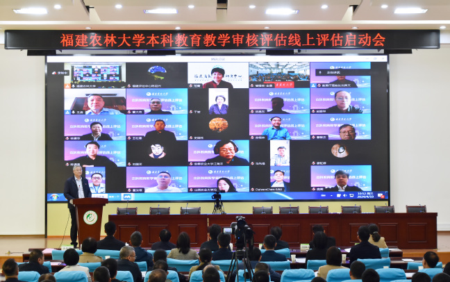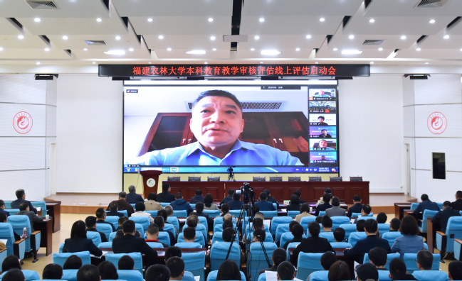4月10日上午,我校以线上线下相结合的方式召开本科教育教学审核评估线上评估启动会。由中国农业大学原副校长王涛教授担任组长的教育部审核评估专家组全体成员、省教育评估研究中心主任范菁、省教育厅高教处副处长刘典文在线出席会议。我校全体在家校领导在禧强楼学术报告厅出席会议。会议由副校长唐振鹏主持。