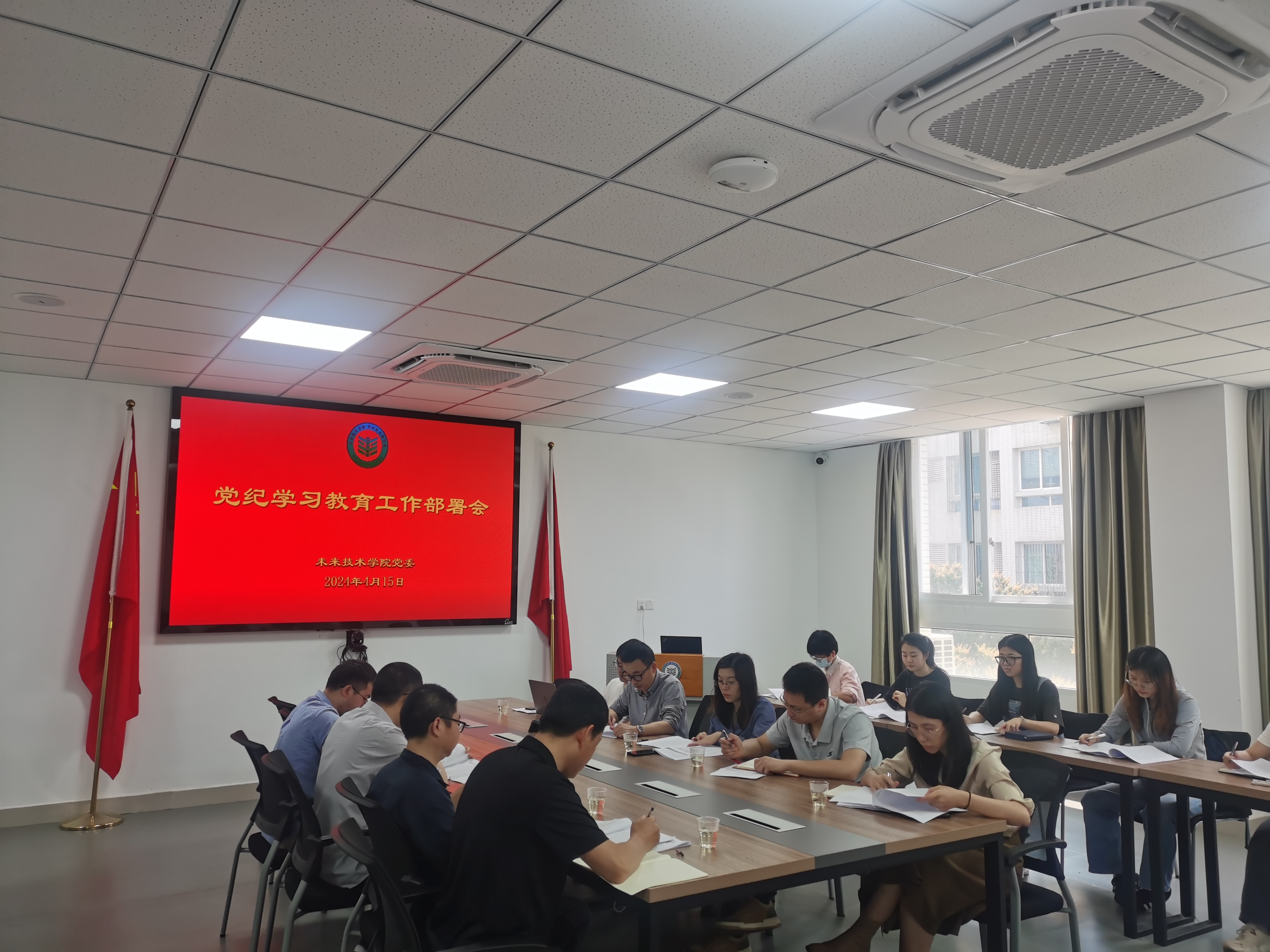 4月15日上午,未来技术学院党委召开党纪学习教育工作部署会,学院领导班子成员、师生党支部书记、科级干部、辅导员等参加会议,会议由学院党委书记翁子健主持。