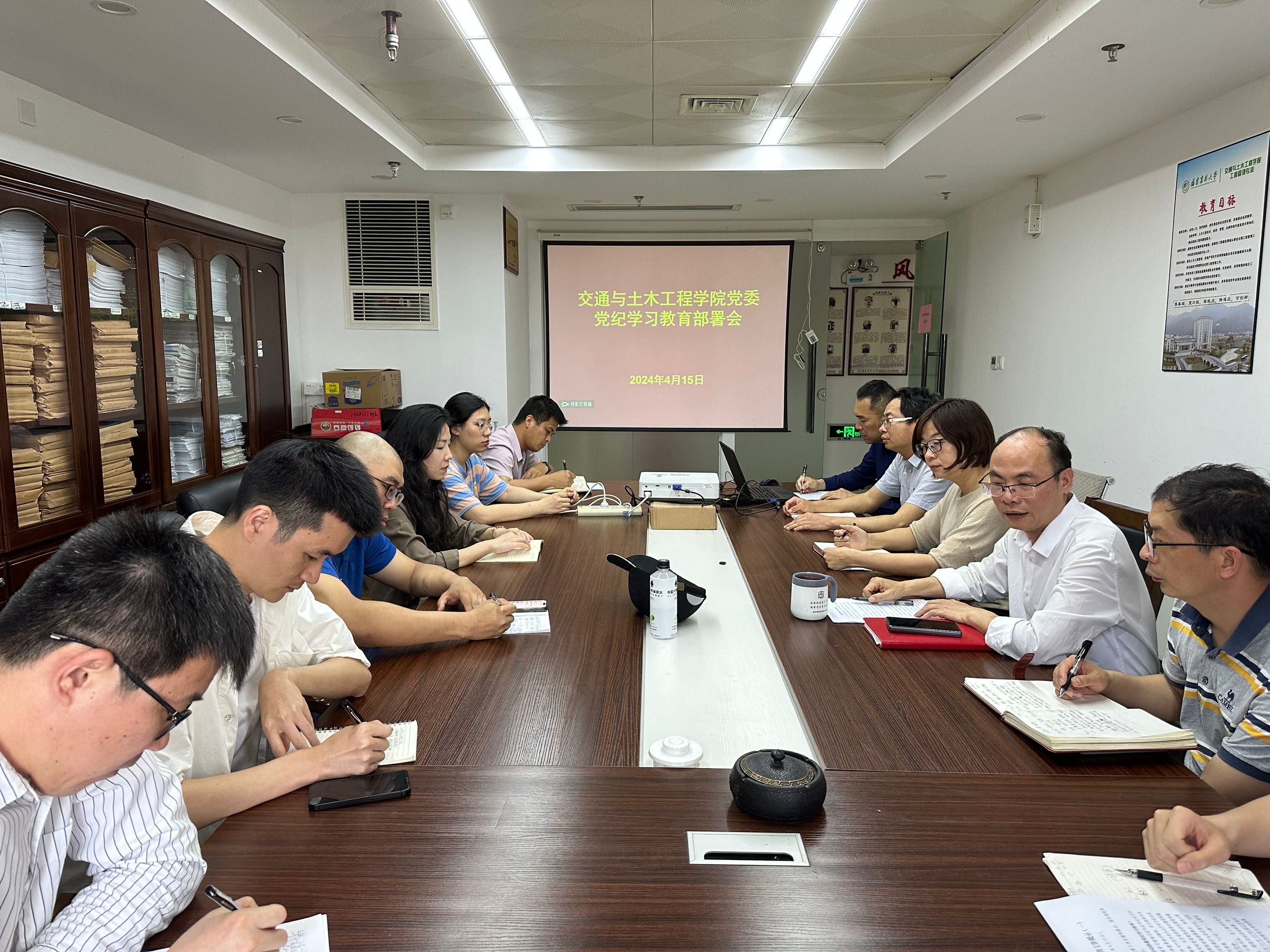 4月15日下午,交通与土木工程学院党委在旗综517会议室召开党纪学习教育部署会,传达习近平总书记关于开展党纪学习教育的重要讲话和重要指示精神,落实中共中央办公厅《关于在全党开展党纪学习教育的通知》的要求,部署党纪学习教育工作。会议由学院党委书记黄文龙主持,党委委员、党支部书记参加了会议。