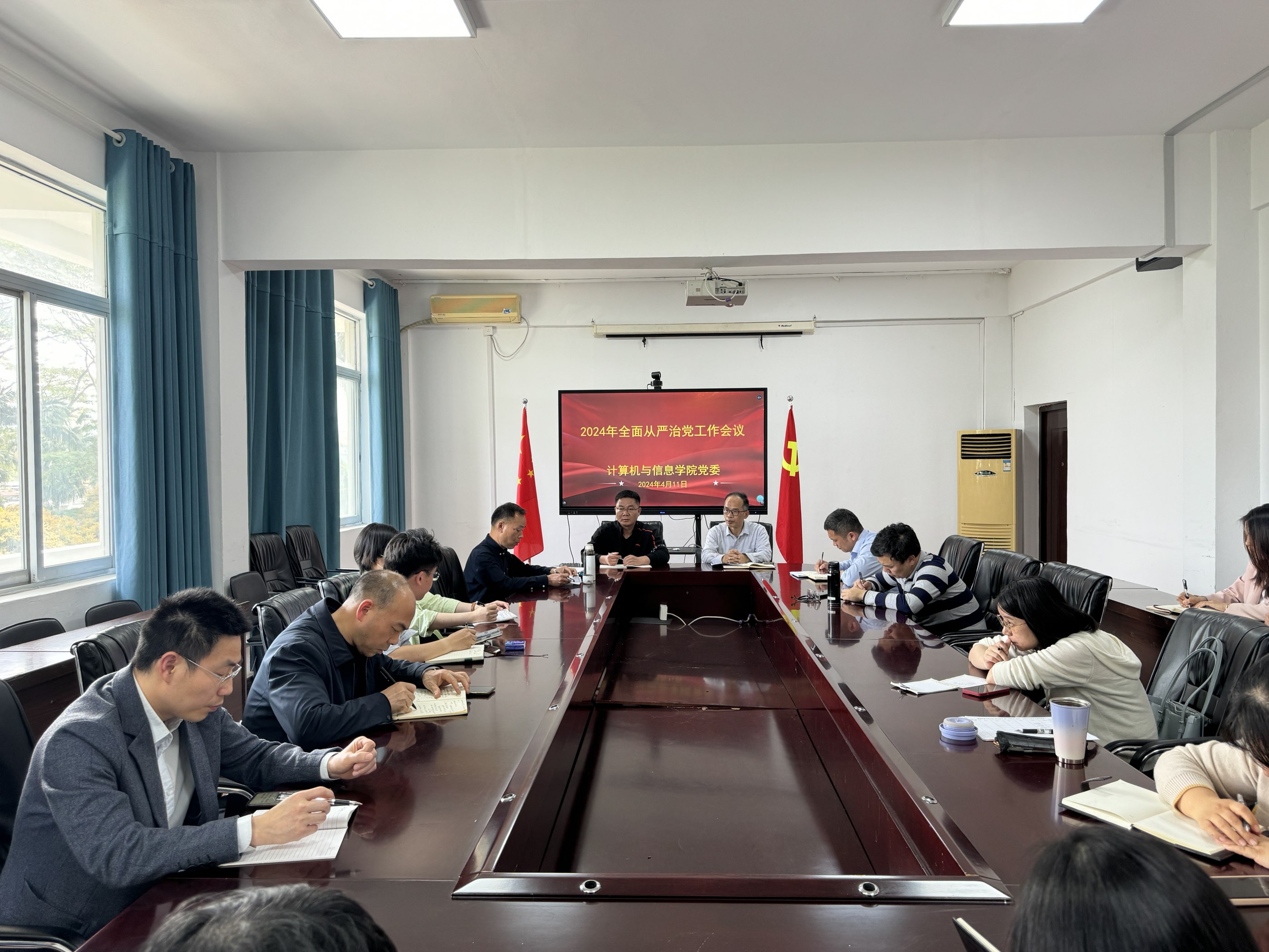 4月11日下午,计算机与信息学院党委在302会议室召开2024年全面从严治党工作会议,学院党委委员、党政领导、党支部书记参加了会议,会议由学院党委书记钟一文主持。