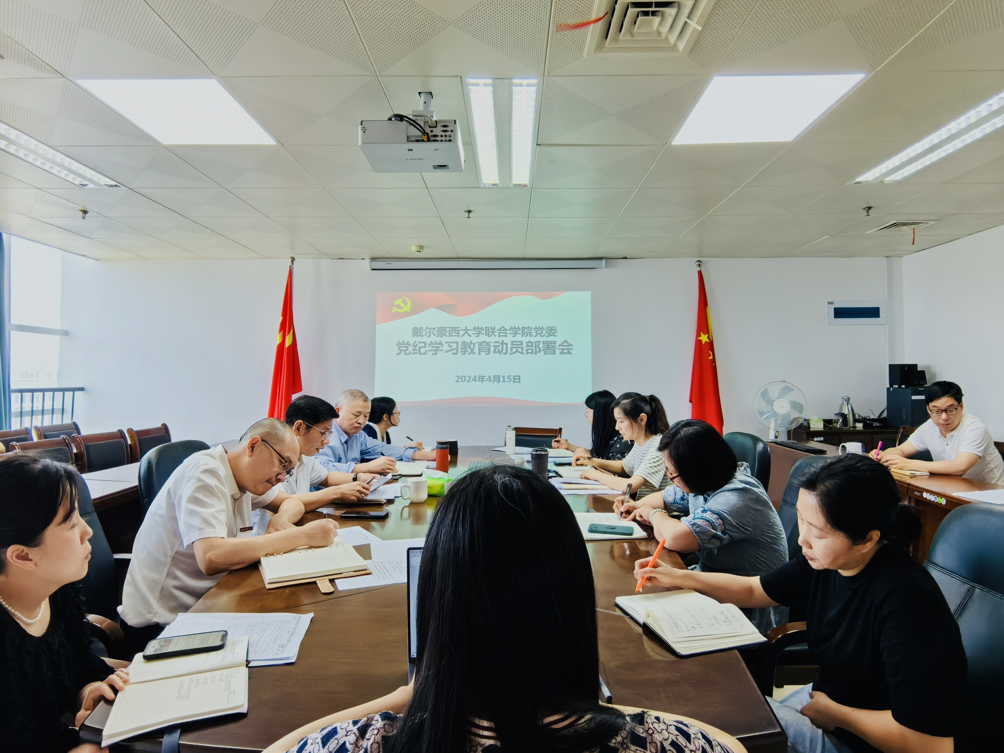 4月15日上午,戴尔豪西大学联合学院党委召开党纪学习教育动员部署会,认真传达学习贯彻习近平总书记关于开展党纪学习教育的重要讲话和重要指示精神、党中央《关于在全党开展党纪学习教育的通知》,贯彻落实省委、校党委常委会暨党的建设工作领导小组会议精神,部署开展学院党纪学习教育工作。学院党政领导班子成员、党委委员、党支部书记及科级干部参加会议,院党委书记林平主持会议。