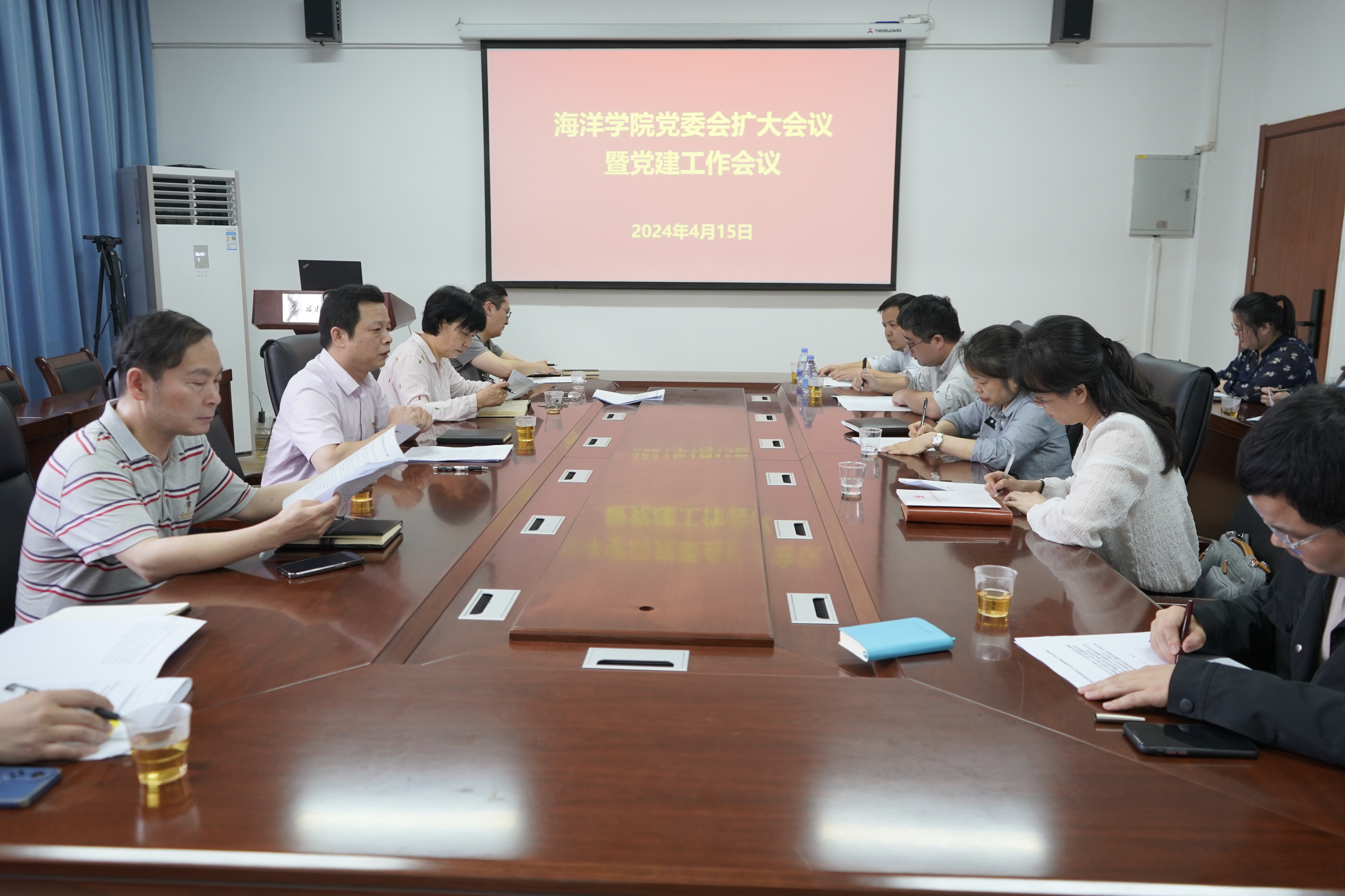 4月15日下午,海洋学院党委在学院5楼会议室召开学院党委会扩大会议暨党建工作会议,就开展好党纪学习教育工作进行动员部署。学院领导班子成员、党支部书记和副书记、教学系(实验中心)负责人、科室负责人、辅导员等参加。会议由学院党委书记黄毅军主持。