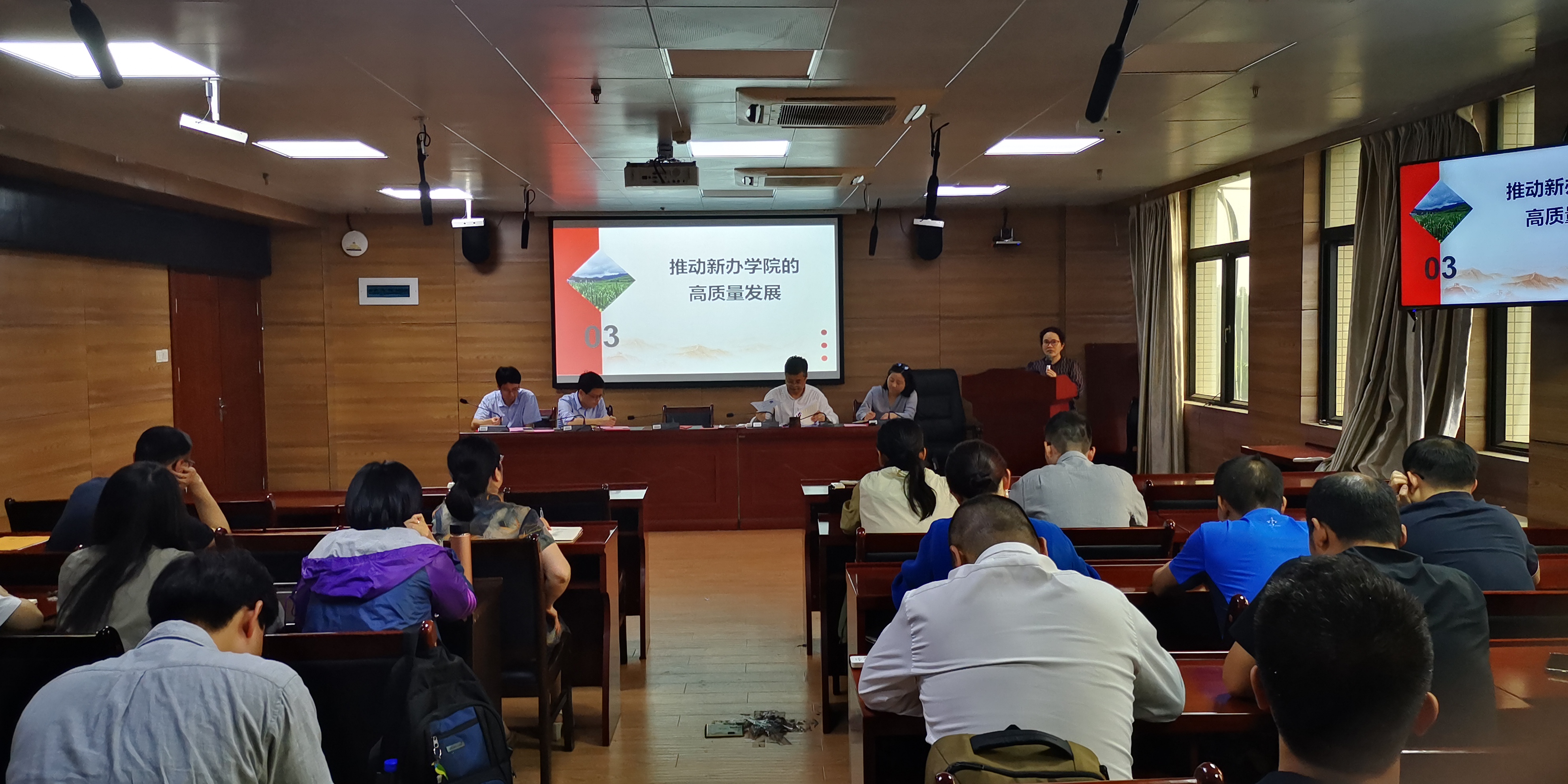 主持学院行政工作的许卫锋结合本科教学评估就学科建设、专业设置、科研培育等作了部署。领导班子其他成员就推动毕业生就业工作,教师申请出国相关规定要求,本科教学与研究生培养等作了安排。