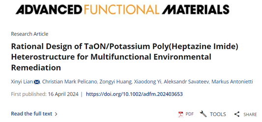 近日,我校生命科学学院青年教师练昕怡博士联合德国马克斯普朗克胶体与界面研究所国际著名材料学家Markus Antonietti教授团队与厦门大学伊晓东教授团队合作,以第一作者兼唯一通讯作者,在“多功能半导体异质结应用于新能源环境治理”领域取得重要进展,并在国际材料顶级期刊 Advanced Functional Materials (《先进功能材料》) 在线发表题目为“Rational Design of TaON/Potassium Poly(Heptazine Imide) Heterostructure for Multifunctional Environmental Remediation” (精准构建多功能氮氧化钽/钾聚庚嗪异质结在环境治理中的应用)的研究论文。