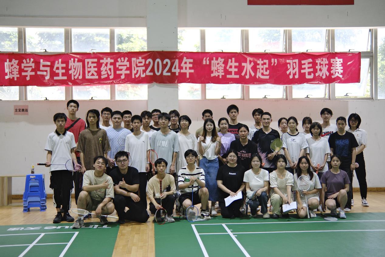 4月21日下午,蜂学与生物医药学院于白鹭体育馆举办2024年“蜂生水起”羽毛球赛,各年级学生积极参赛,辅导员罗苗参与活动。