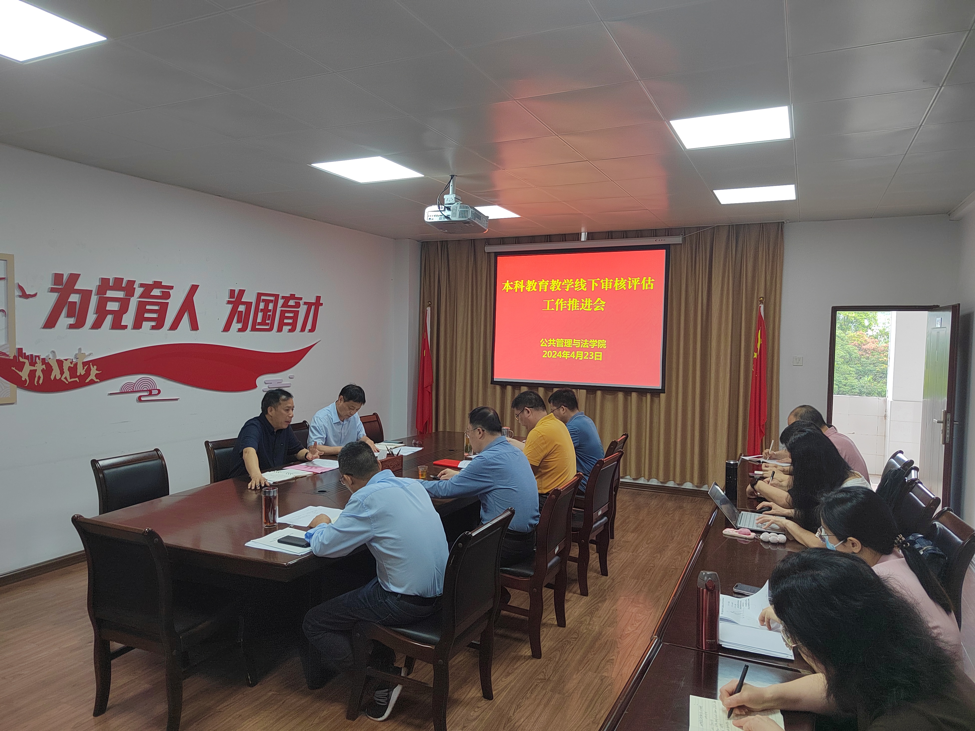 4月23日上午,公共管理与法学院在学院416会议室召开本科教育教学线下审核评估工作推进会,院党委书记曾起郁、院长郭为桂及党政领导班子成员出席会议,会议由院长郭为桂主持。