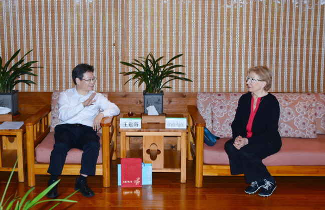 4月24日上午,美国科学院院士Natasha Raikhel莅校调研交流。校党委书记王建南、副校长郑宝东在明德楼十三层会客室会见客人。