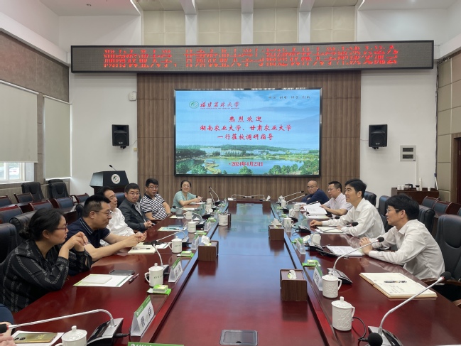 4月23日,湖南农业大学党委副书记陈光辉、甘肃农业大学副校长汪精海分别带领学校计划财务处负责同志来我校调研交流。