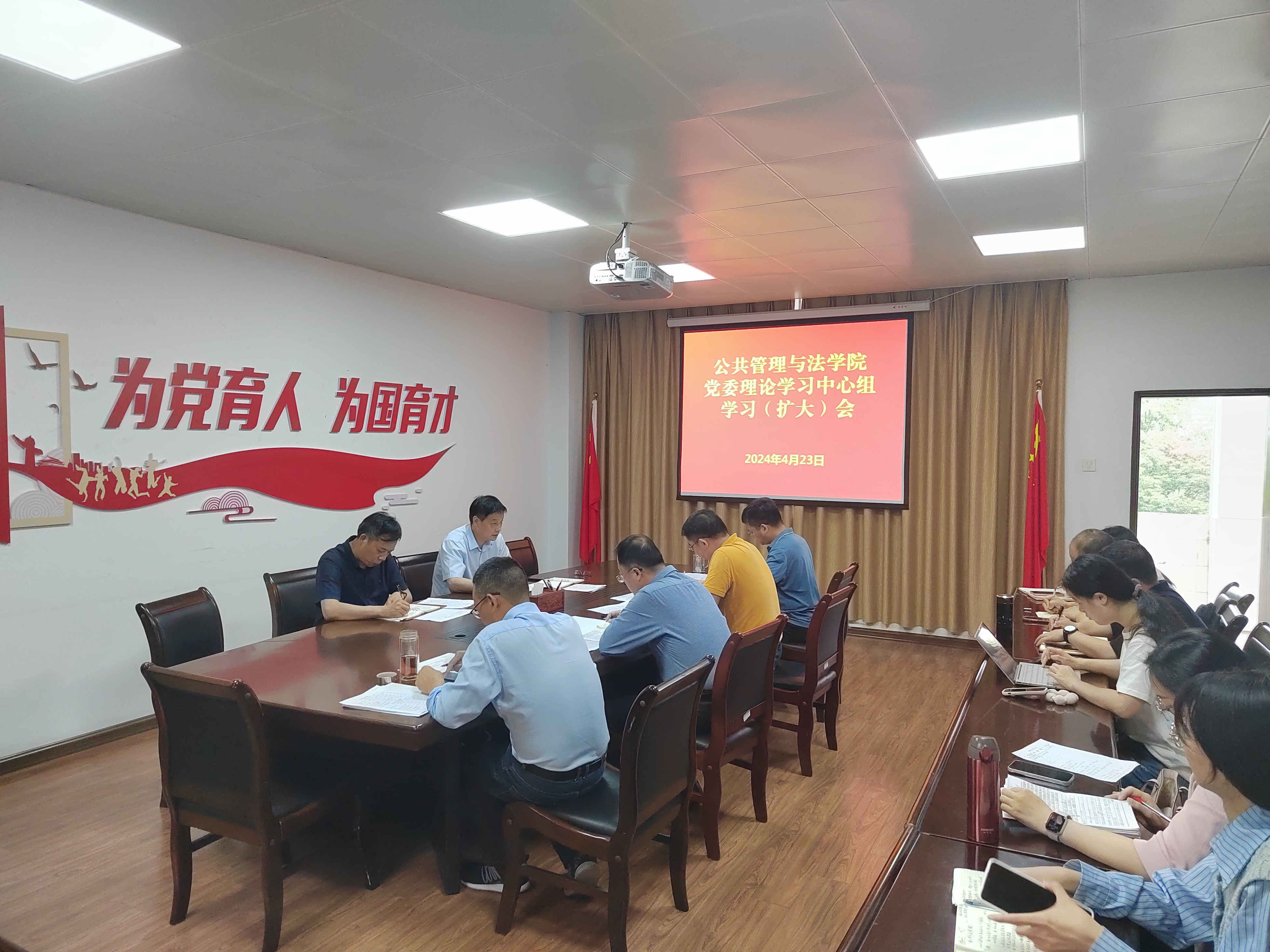 4月23日上午,公共管理与法学院党委理论学习中心组在学院416会议室召开学习(扩大)会,专题学习省委书记周祖翼来校调研时的讲话精神。院党委理论学习中心组成员、党支部书记、全体政工干部出席会议,会议由院党委书记曾起郁主持。