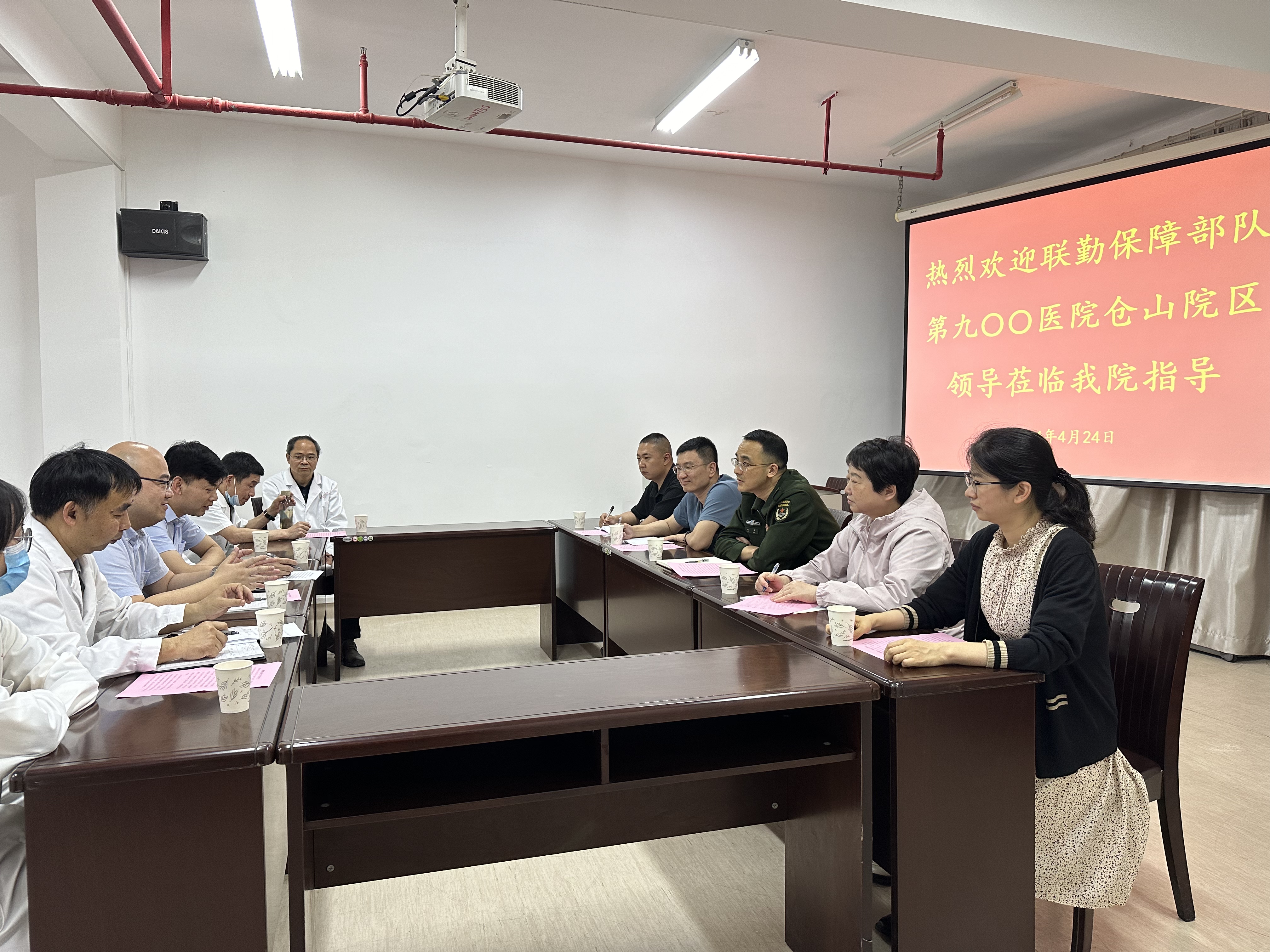 4月24日,中国人民解放军联勤保障部队第九〇〇医院仓山院区副院长邱卓一行到校医院调研交流医疗保障工作。后勤管理处副处长刘键政、校医院相关负责同志参加调研座谈。