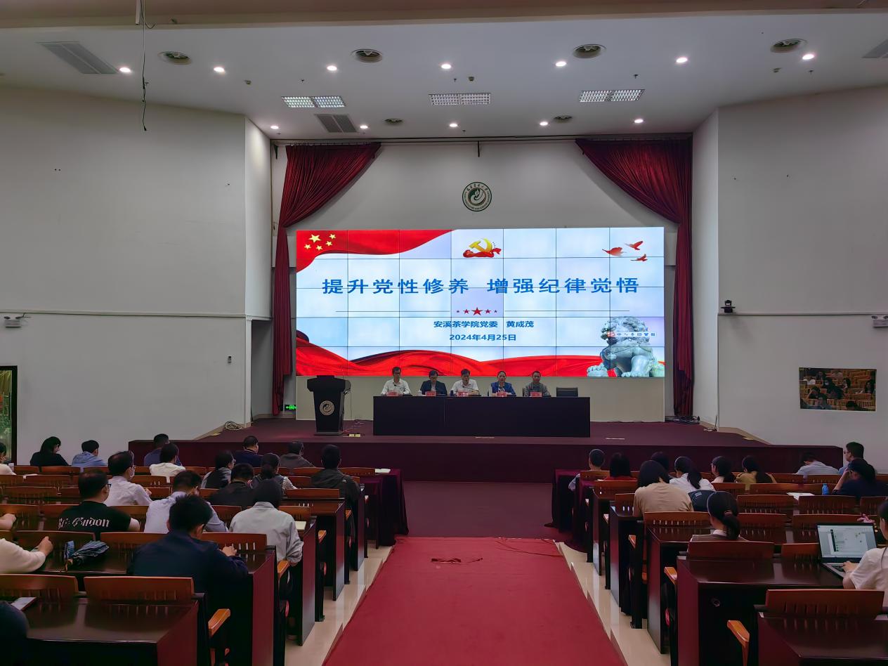 4月25日下午,安溪茶学院党委副书记(主持工作)黄成茂为学院教职工作了题为《提升党性修养 增强纪律觉悟》的党纪学习教育专题辅导报告。