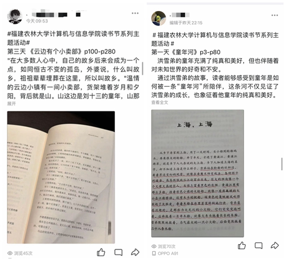 本次读书打卡活动通过在QQ空间发布书籍读后感的形式,鼓励同学们积极分享自己的阅读体验和感悟,受到了学子们的热烈欢迎,大家纷纷在QQ空间发表自己的读后感,并附上精美的书籍图片,以此记录自己的阅读历程。据悉,截止发稿时已有600余人次参与了读书打卡活动。参与活动的同学们纷纷表示,读书打卡活动为大家提供了一个展示自己阅读成果的平台,大家通过互相交流读后感,激发了对阅读的热爱和对知识的渴望,不仅能够拓宽视野、增长见识,还能在阅读中找到志同道合的朋友,共同进步。