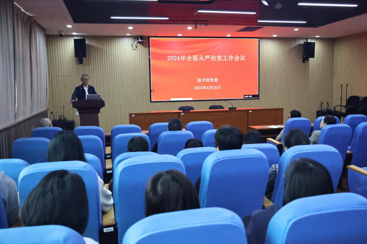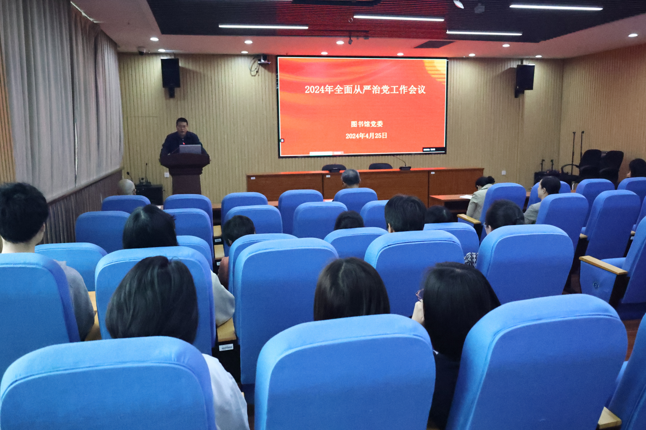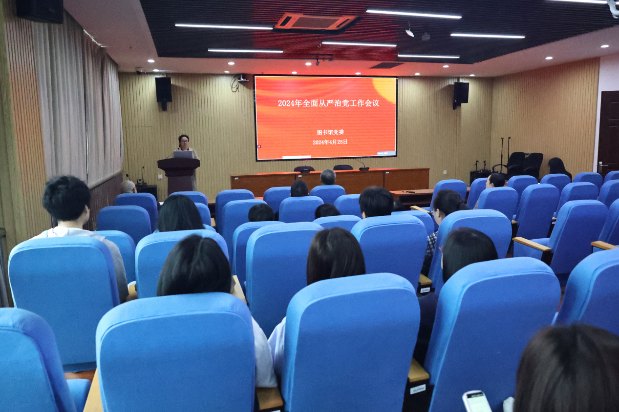 4月25日下午,图书馆在逸夫图书馆二楼视听阅览室召开2024年全面从严治党工作会议,图书馆全体教职工参加。会议由图书馆党委书记陈月霄主持。