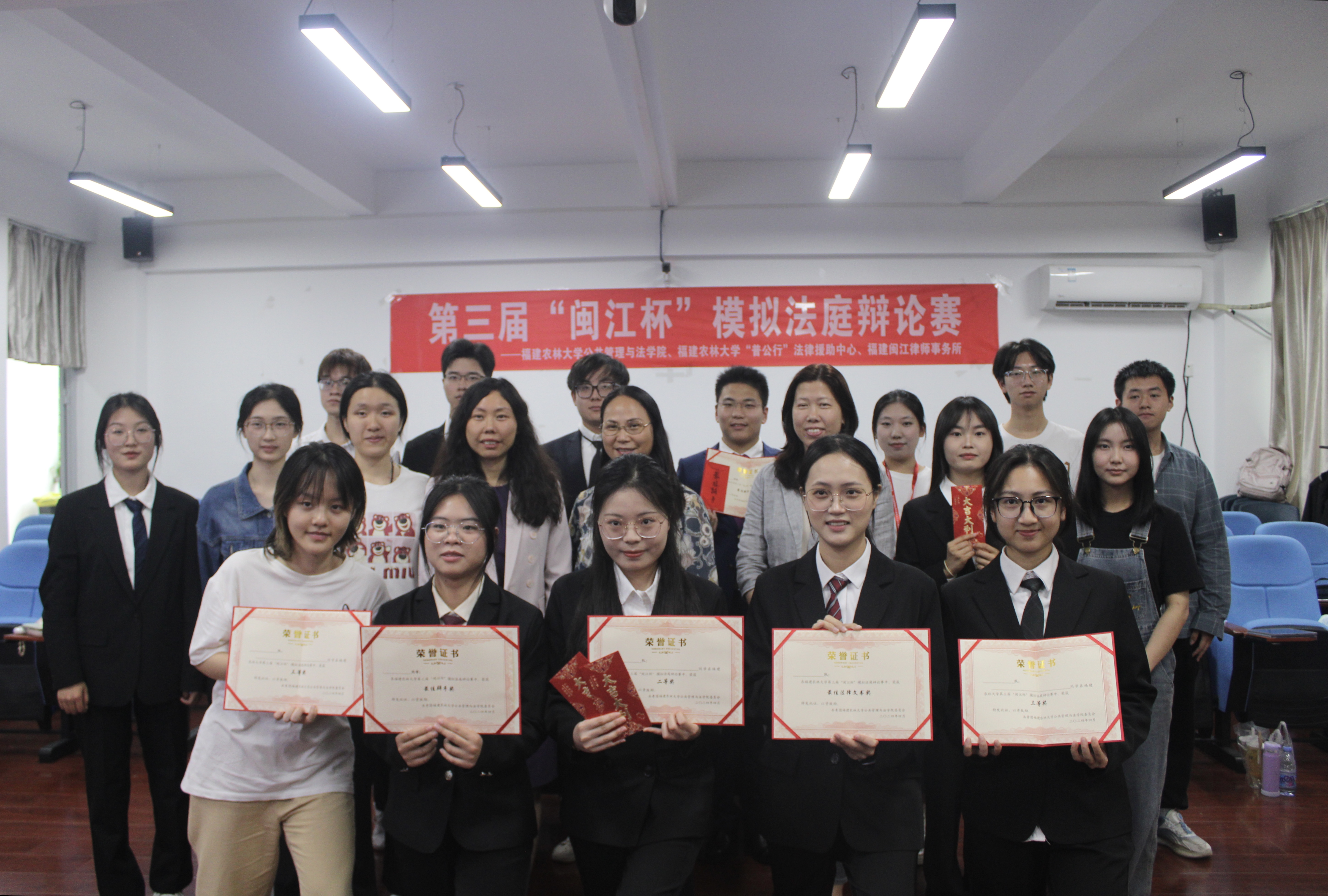 本次比赛共有24支队伍参与,最终1900队荣获一等奖;干饭不想排队荣获二等奖;哈哈哈队名这么长主持人你很累吧队与拆散一队是一队荣获三等奖;邹海昇、刘国靖、林雅倩三位同学荣获最佳辩手奖;1900队与干饭不想排队荣获最佳法律文书奖。
