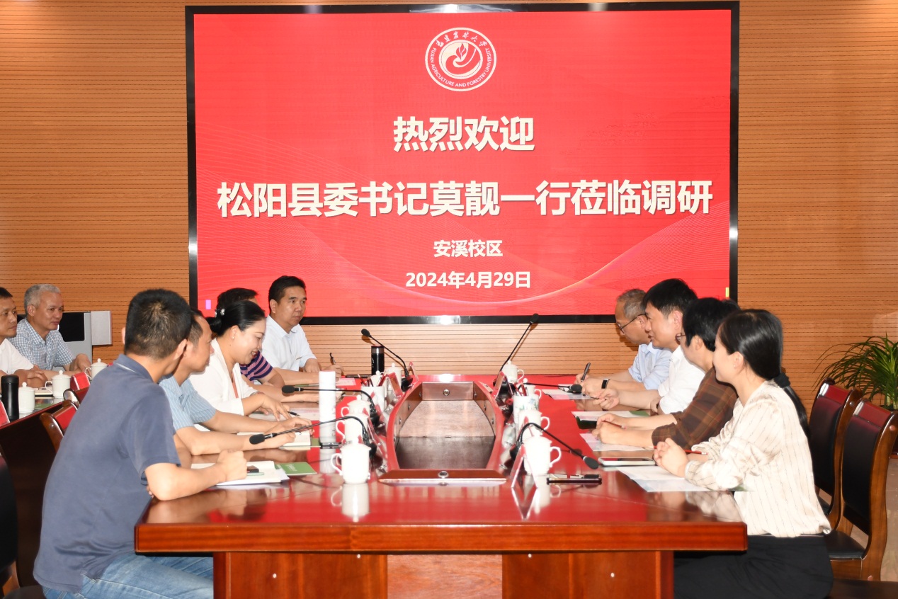 4月29日,松阳县委书记莫靓一行莅临安溪校区调研并召开座谈会,会议由安溪校区管委会主任郭玉琼主持,松阳县政协主席廖宝云、人大常委会副主任张屏、副县长彭敏,安溪校区管委会副主任张云帆、陈勇参加会议。