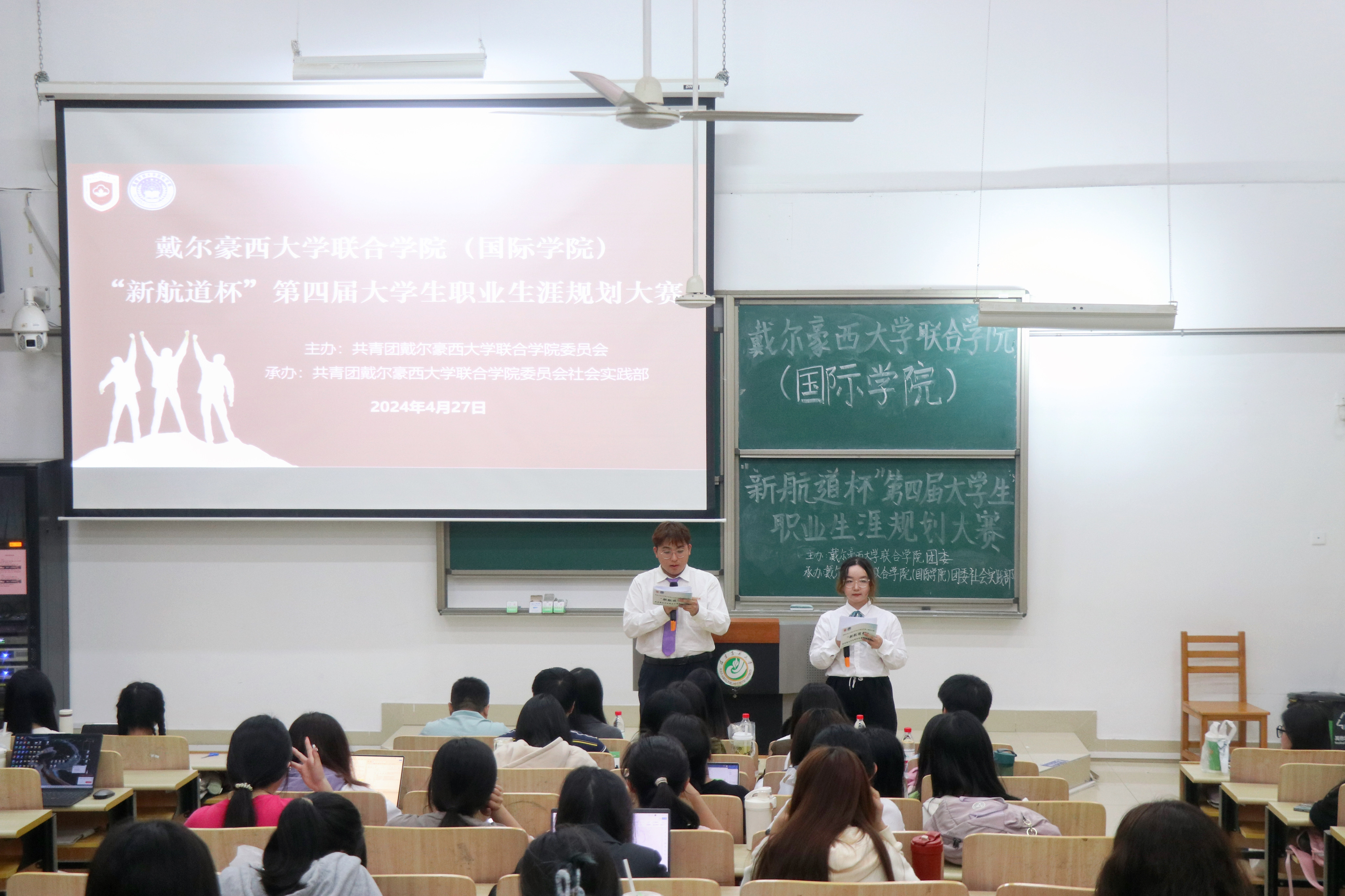 4月27日,戴尔豪西大学联合学院(国际学院)在旗山校区教学楼100举办“新航道杯”第四届大学生职业生涯规划大赛。新航道福州学校人力资源部总监林颖、九色鹿培训学校招聘经理王倩、创新创业中心创业指导科科长耿银行、材料工程学院辅导员郭炳春出席决赛现场并担任评委。团委书记王庆丰、辅导员周燕华、杨超、康同莉及各年级学生代表等150余人观看比赛。
