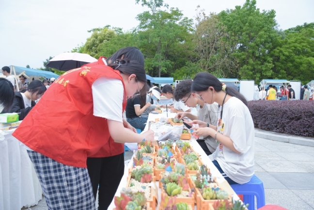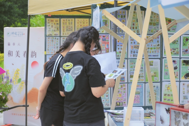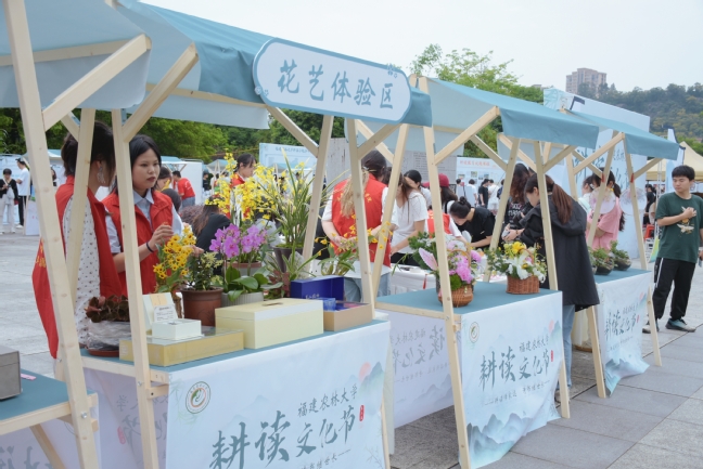 花茗清韵展区设有茶艺体验、种艺画体验、花艺体验等环节,师生们闻香识茶、学制茶流程、制茶味香包、制作团扇、打造植物微景观,感受传统文化的独特韵味。墨香书韵包含书画体验区和春耕集市。福建省开明画院走进校园,与师生共绘书画作品,共同感受农耕文化的厚重与书画艺术的魅力,让美育的力量在无形中得以传递和深化。