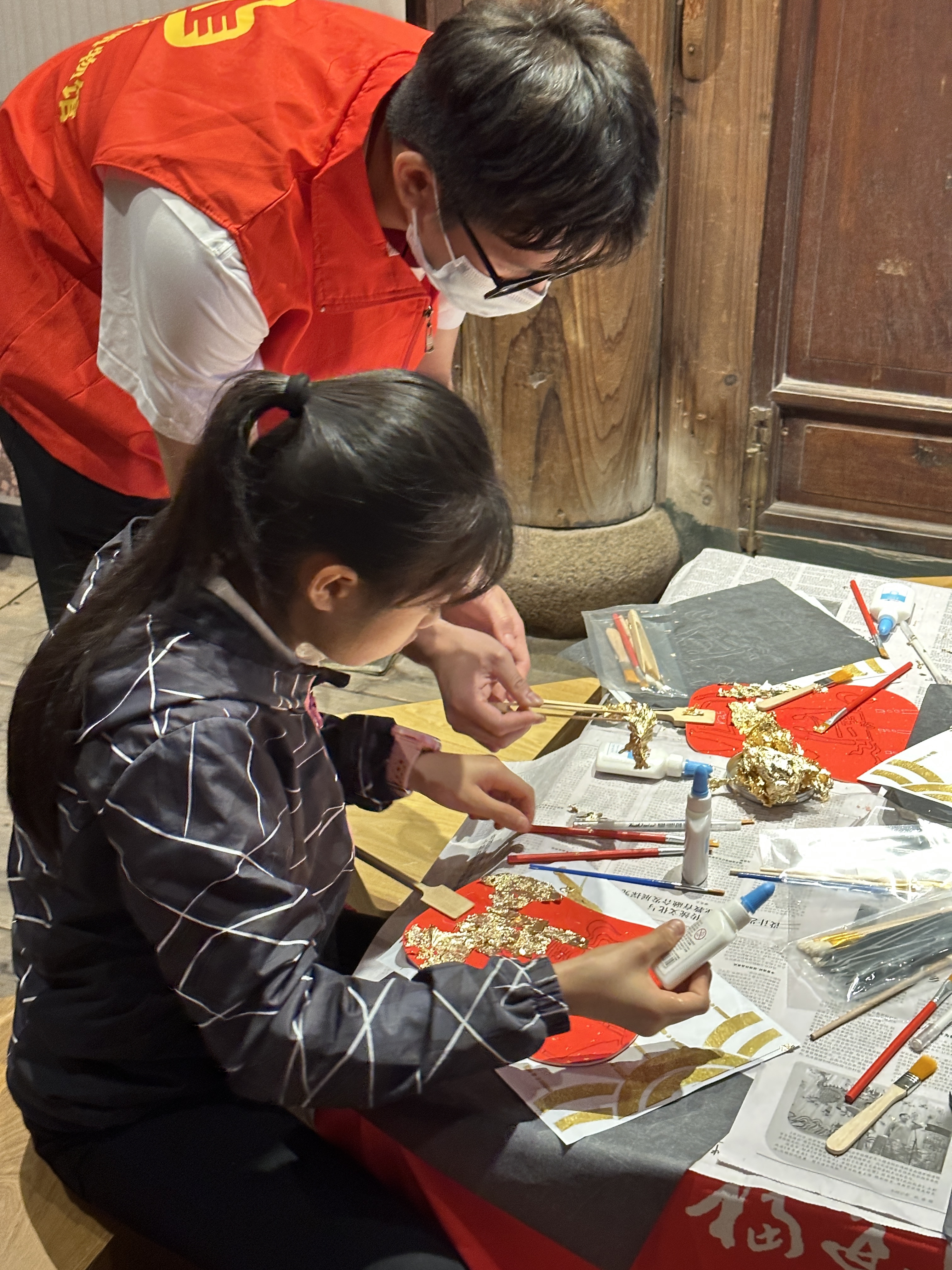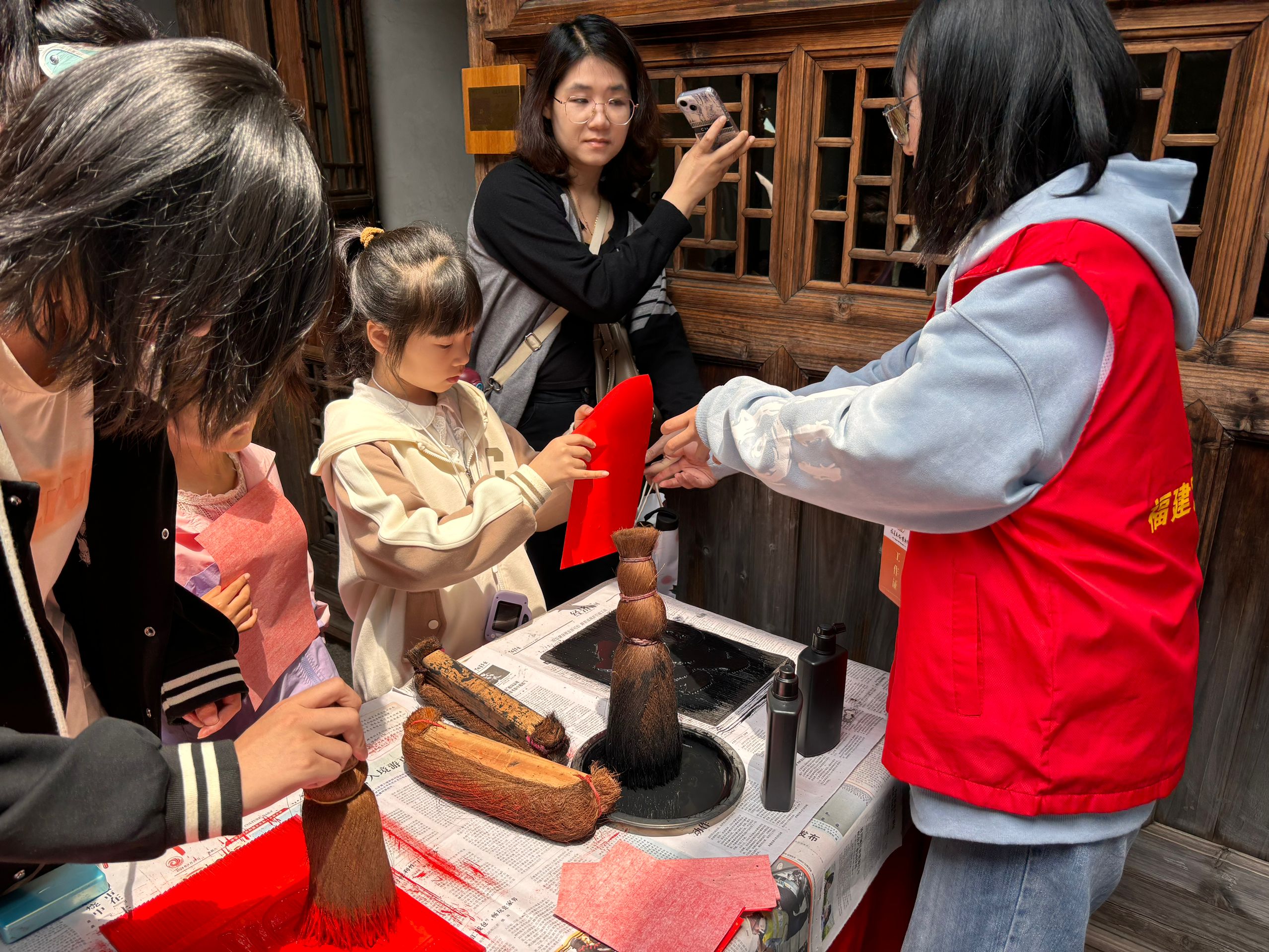 传统文化拓福手工体验。拓印活动以“福”文化为主题,游客在志愿者的帮助下,将传统文化与现代元素巧妙结合,拓印不同的“福”字,美好的寓意使游客参与活动热情高涨,长队不绝。