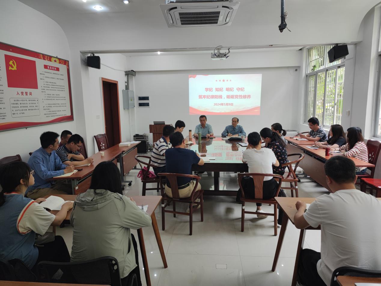 余顺兴传达了校党委党纪学习教育专题读书班开班暨首场专题学习交流会的会议精神,并以《学纪 知纪 明纪 守纪--筑牢纪律防线,砥砺党性修养》为题,围绕深刻领悟党纪学习教育的重要意义、准确把握《中国共产党纪律处分条例》的精神实质、严守党的六大纪律、推动党纪学习教育取得扎实成效等方面,与大家开展学习交流。