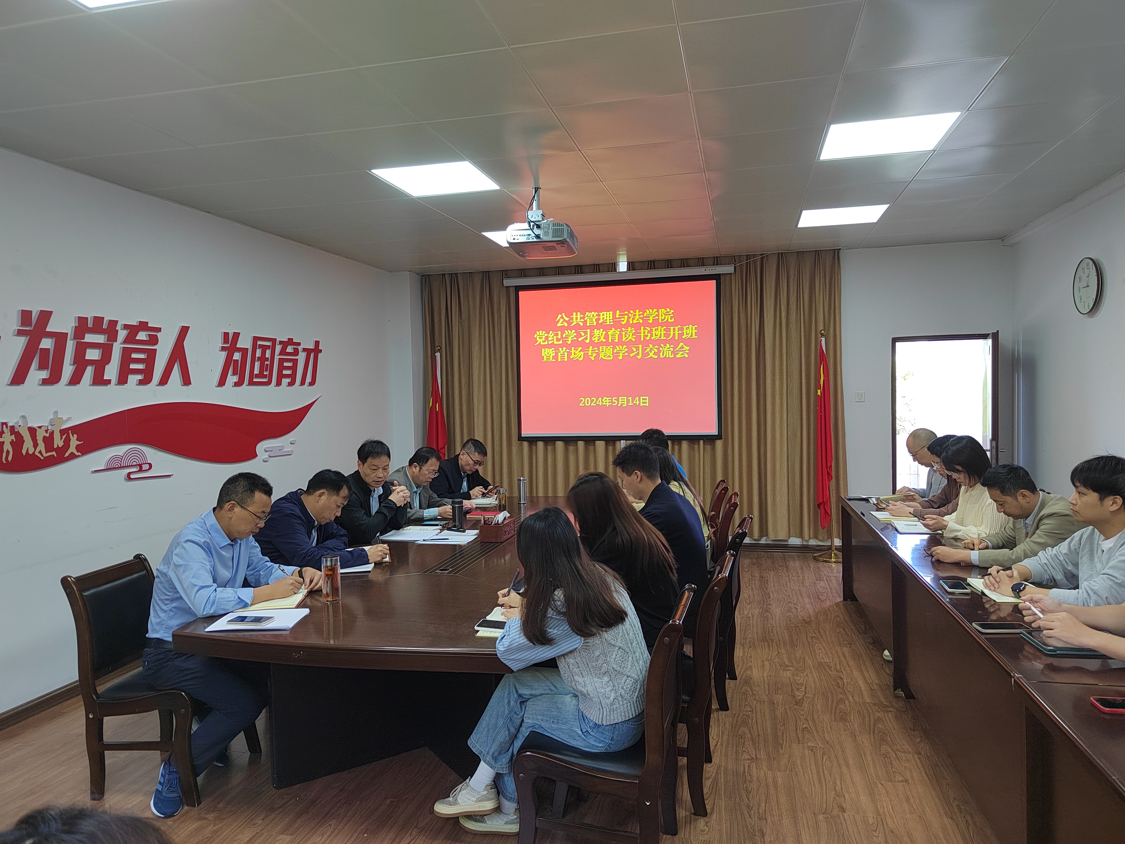 5月14日上午,公共管理与法学院党纪学习教育读书班开班暨首场专题学习交流会在学院416会议室举行。院党委书记曾起郁作开班讲话并做专题分享交流。学院党委委员、全体科级干部和党支部书记参加会议。