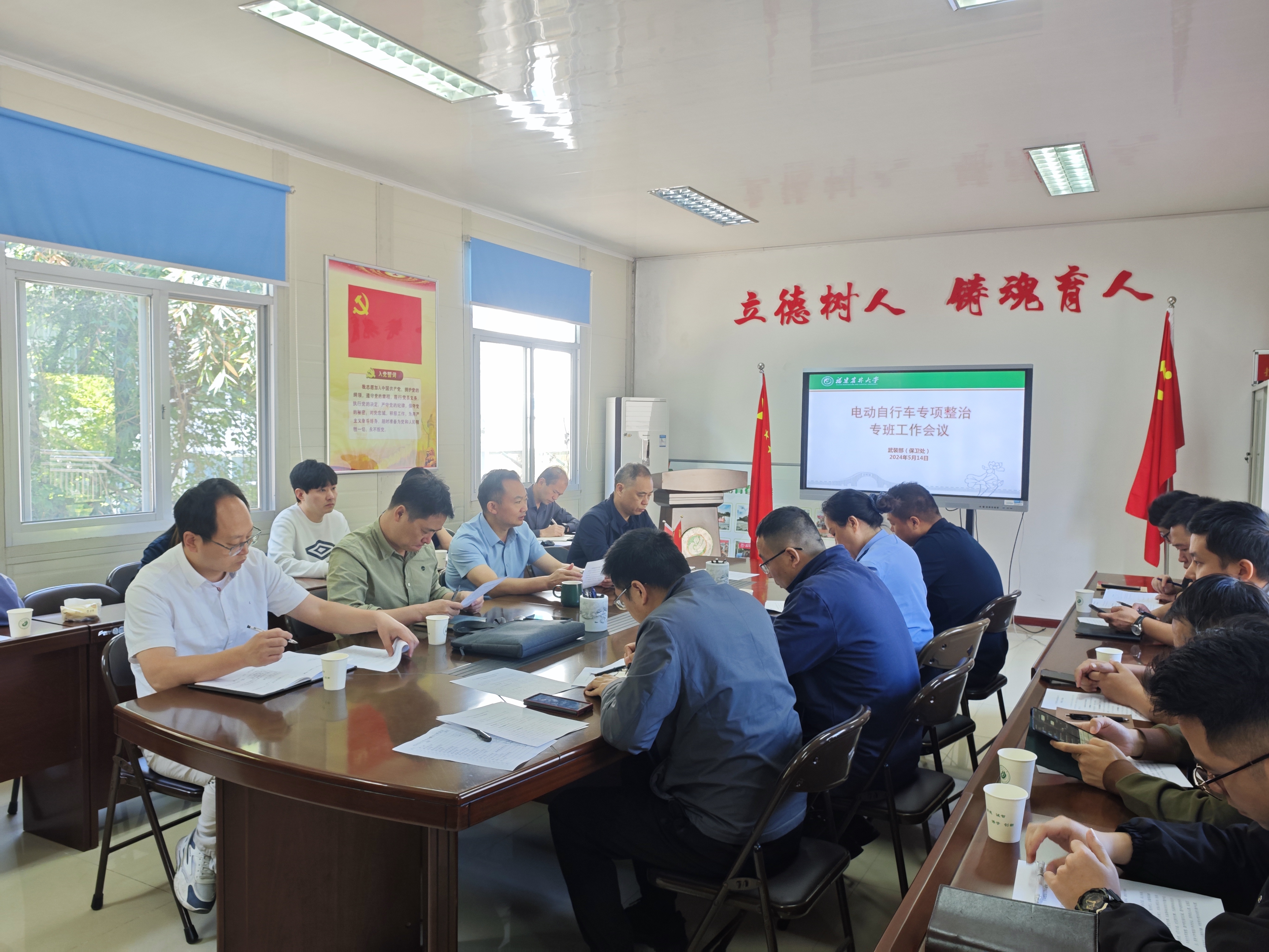 武装部(保卫处)部长肖知亮主持会议。肖知亮围绕健全制度机制、加强教育引导、推进登记挂牌、完善配套保障等方面,紧贴校区实际就“无备案码电动自行车专项清理”及“2024届毕业生电动自行车处置”两项工作进行了具体安排。与会人员立足职责和任务分工,就更好推进电动自行车专项整治工作进行沟通交流、建言献策。