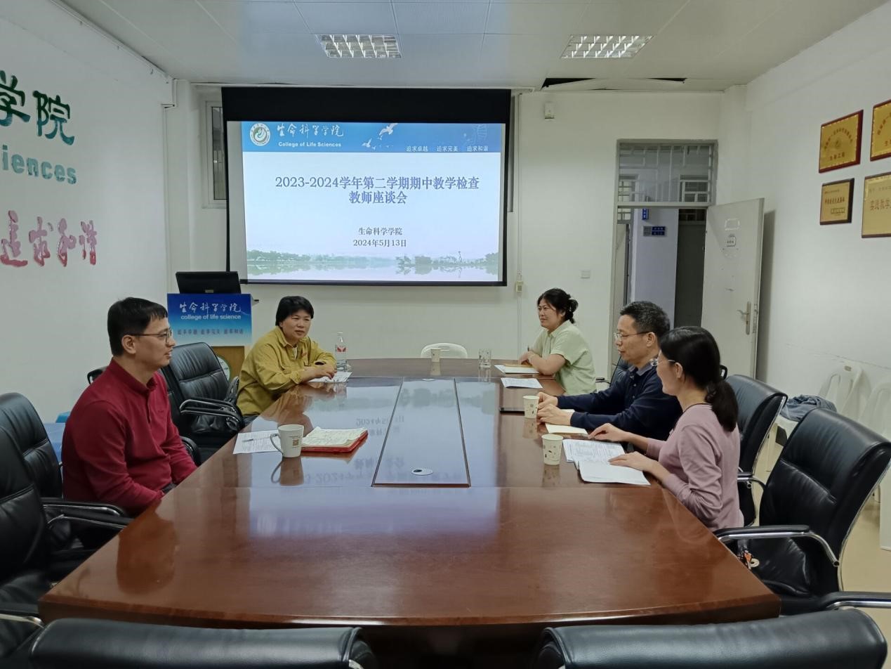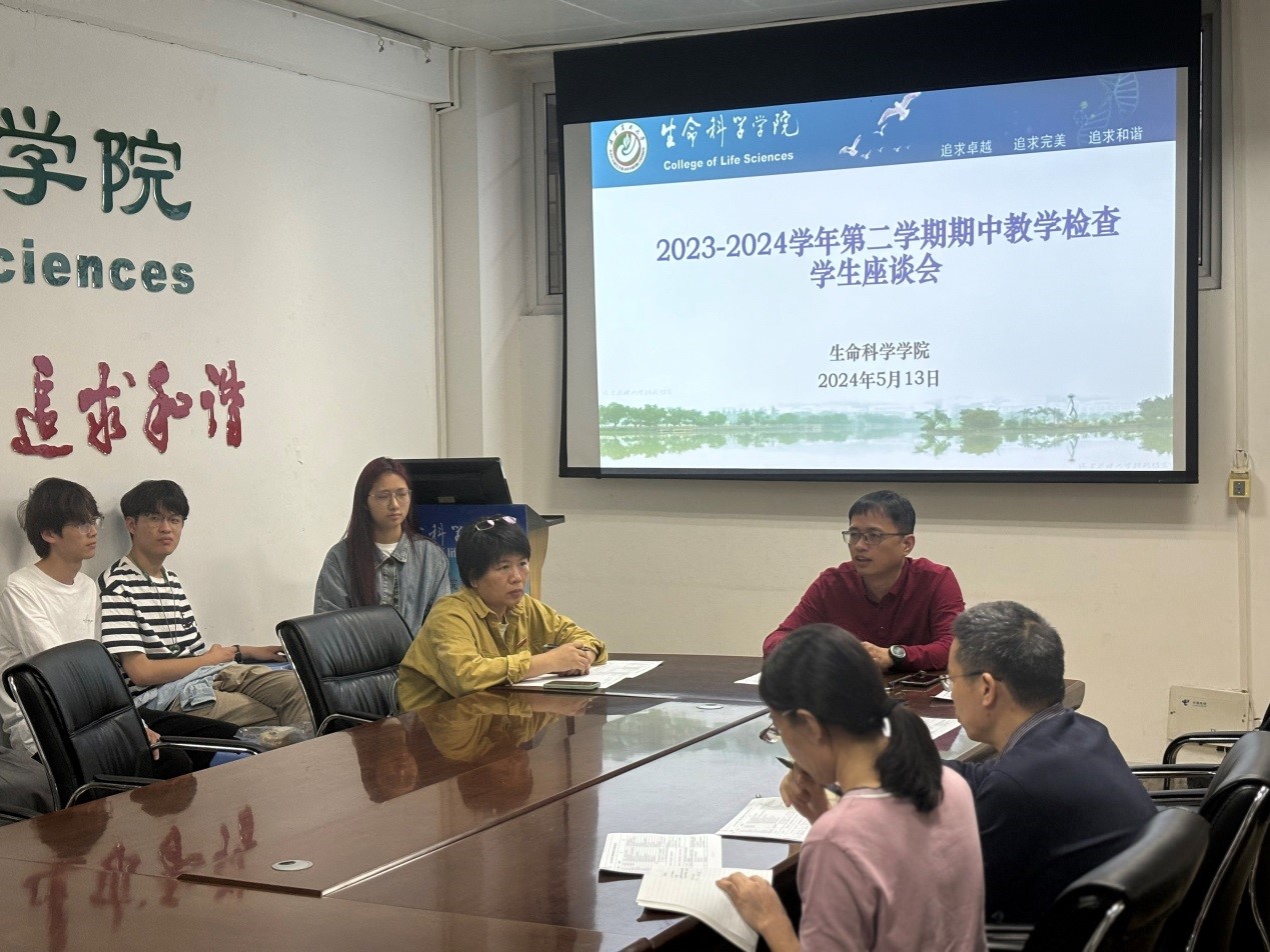 5月13日晚,生命科学学院在生科楼404会议室举行2023-2024学年第二学期期中教学学生座谈会、教师与学生座谈会。会议由生命科学学院副院长黄天培主持,本科教育办、各专业负责人以及21、22、23级各专业本科班学委参加。