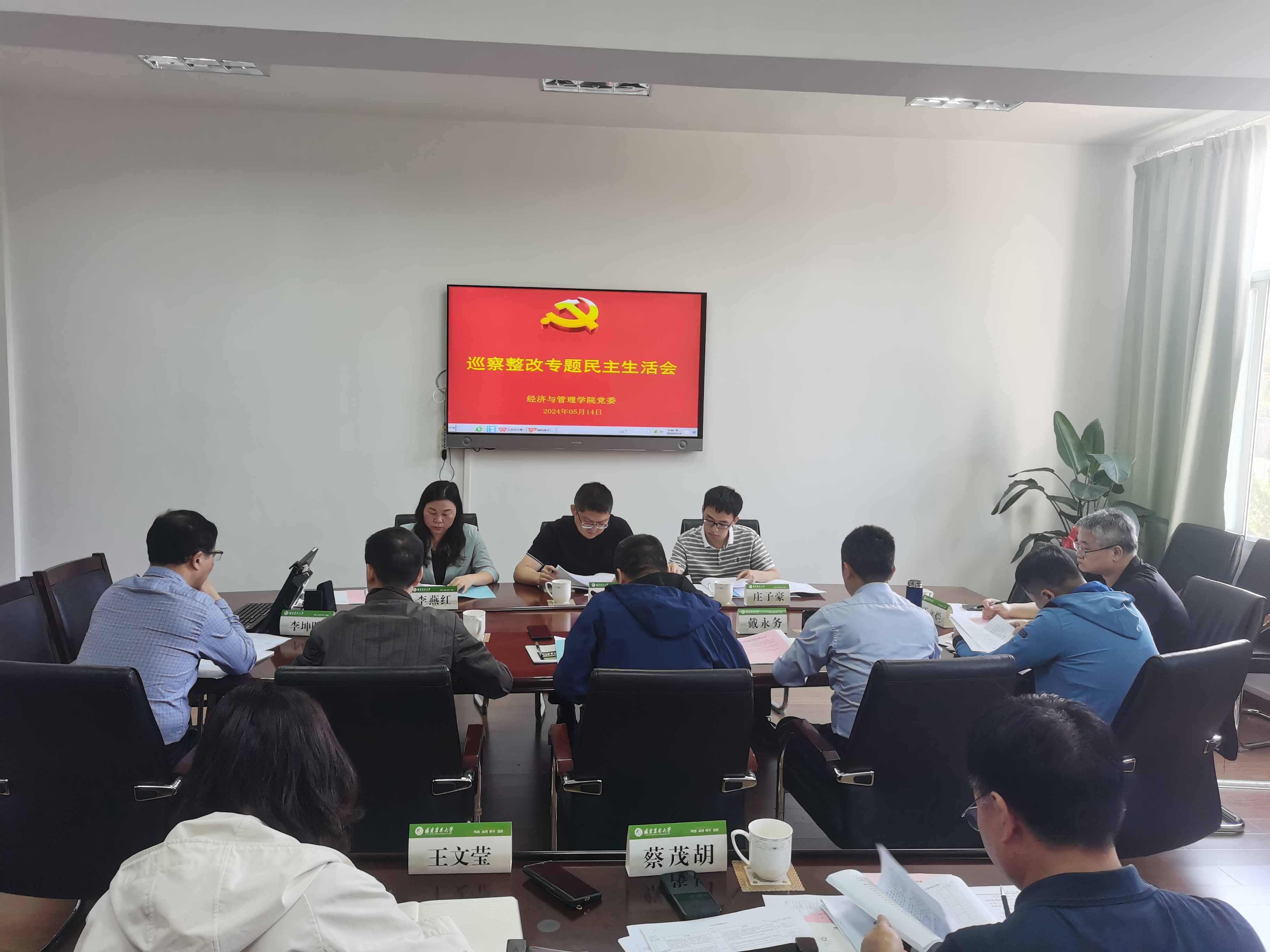 5月14日上午,经济与管理学院党委在学院311会议室召开巡察整改专题民主生活会。校督导组蓝锋、李燕红、庄子豪莅会指导,学院党委班子成员参加会议,学院纪委委员、工会主席、科级干部等列席会议。会议由学院党委书记张开晃主持。
